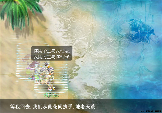 为了迎接梦幻十周年,叶子猪将独家推出梦幻美文回顾系列,从2013年11月13日开始至12月底,每天回顾一篇经典美文,看看梦幻十年间那些名人留下的名言以及玩家在梦幻中的爱恨情仇,欣赏他们优美的文笔。 第十四期:十周年美文第14期:左手德阳右手明秀园 第十五期:十周年美文第15期:那些记忆里的似水流年 第十六期:梦幻十周年美文第16期:假如 世界晴一天 点击此处查看更多>>>> 今天是11月30日,第19篇回顾美文《梦幻图文:年华过境走不出北极》。本文由浅陌嫣于2009年12月28日发表于叶子猪,由鸡翅推荐。 推荐理由:有人说相见不如怀念,怀念不如忘却。可是那些最初的单纯爱恋,正是搁浅青春一阵子,流淌记忆一辈子。浅陌嫣回忆了自己爱情之路,没有放弃,不曾后悔,因为他说会等,哪怕生生世世。注定纠缠不清,不也是我们所期望中爱情的样子吗? 原文: 他们都说,我们的爱情,不会有好的结局。 我一直没有放弃,我一直都在努力。 你说你会等我,哪怕生生世世。 冥冥中注定,我要和你纠缠不清,也许这就是宿命。 你说了,于是我信了。我以为这就是爱情,为此赴汤蹈火。 也许,我真的不是坚强的人。 那样天真的把你当成了天,以为一抬头就能看到你温暖的脸。 踩着人行道上白色的砖块,想象自己在云上飞行。 脑海中你熟悉的笑脸如水般纯净。 如此温暖的阳光下面,你们的微笑一如从前。 我就像是一个突然被遗弃了的孩子,站在川流不息的时光面前哑口无言。 只有眼泪簌簌的流下来。 从纯白到苍白,从苍白到尘埃,不过是一个眨眼的时间。 明明泪已擦干,为什么却有一种快要哭了,灵魂被抽干的孤单。 我忘记了哪年哪月的哪一天,我们在哪里,微笑着,忧伤着,凝望着。 我们的友情最终抵不过你们的爱,支离破碎。 那时是我们很嚣张的青春年华,许多伤害在笑容中一抹而去,剩下的刻骨銘心,却是一生都无法忘却的。 原来那么弱小,那么需要我保护的你,为了爱情,也能勇敢到放弃了永恒的生命,甚至强大到背叛了我们的友情。 也许,是我太奢望幸福。是我,错把牵手当约定,错把哭泣当誓言。 很多时候,因为渴望幸福,所以,变得很脆弱。因为害怕脆弱,所以常常和幸福擦身而过。 原来那些自以为是刻骨铭心的人,真的就被时光遗弃了,再也回不来了。 世界太大,我还是遇见了你,世界太小,我还是丢了你。 站在青春的尽头,驻足回首,看我们演尽青春繁华。走曾经走过的路,唱曾经唱过的歌,爱曾经爱过的人。 如果一切都没有办法重新来过,就把这当作是场青春的祭奠,让我们学会成长。 恍惚听到你的声音,抬起头,用45度的余光。你那里的天空,是不是如我这边一样的忧伤?