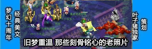 为了迎接梦幻十周年,叶子猪将独家推出梦幻美文回顾系列,从2013年11月13日开始至12月底,每天回顾一篇经典美文,看看梦幻十年间那些名人留下的名言以及玩家在梦幻中的爱恨情仇,欣赏他们优美的文笔。 第24期:十周年美文第24期:纯粹的追寻快乐 那年的梦幻西游是单纯的 第25期:十周年美文第25期:一梦七年 献给我喜欢的梦幻西游 第26期:十周年美文第26期:梦幻西游 落英缤纷网络世外桃源 第27期:十周年美文第27期:岁月如风 2046年属于我们记忆中的梦幻西游 点击此处查看更多>>>> 今天是12月11日,第29篇回顾美文《旧梦重温 那些刻骨铭心的老照片》。本文由鸡翅整理推荐。 推荐理由:十年可以让少年成为人父,十年可以让热血消散,十年可以让剑胆成灰。在今天看看那些刻骨铭心的老照片,细细咀嚼过去的风华岁月,别有一番滋味。 注意中间 小猪妮妮~ 最早的一批偶像~ |