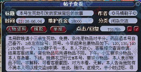 5、山寨版锦衣卫帮杀生死劫掉包物品被永久封号 详细内容:山寨锦衣卫大唐 杀生死劫转东西被永久封号 免费杀生死劫奖励平分似乎是被认为一个很公平的方式,但因双方的诚信度还是留下了不少的问题。拿奖励的一方也许出于私心会说最后得到的书太差,从而导致双方反目。
