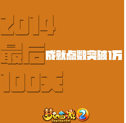 2014年最后的100天——找到一个知心的朋友; 2014年最后的100天——全门派制霸;(略难) 2014年最后的100天——和每一个NPC聊天; 2014年最后的100天——完成第一个科举; 2014年最后的100天——钓到所有种类的鱼; 2014年最后的100天——打造一套让人满意的装备;(无级别?) 2014年最后的100天——成就点数突破一万;