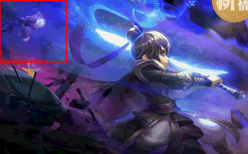 大家看看,是不是很熟悉,这就是神器资料片。 大家肯定都看过了吧,但注意到一个地方没有,会动的地方除了2个角色的仙气、剑侠客的轩辕剑之外,就还有边边区域的一个未知物品,剑侠客头上的龙都不动你一个小物件动什么动,于是成功吸引了我的注意力。