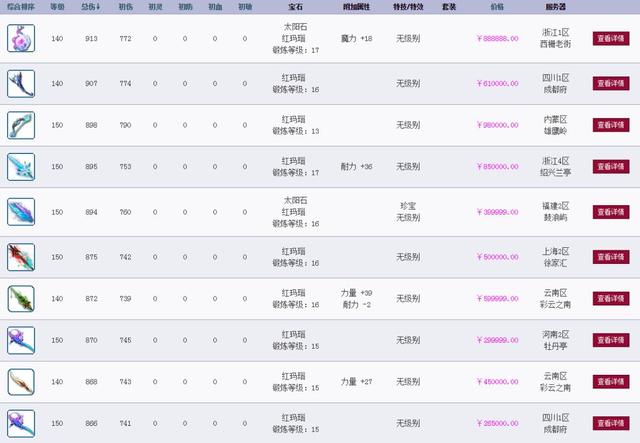 今天凌晨的时候龙溟直播帮老板鉴定一波军火,一组军火鉴定下来一个成就都没有,顿时感觉凌晨的夜晚有点凉。 ![]() 游戏截图 从下面一个一个慢慢看 蓝字只有一个精致 直到最后一把 ![]() 游戏截图 586伤害677命中 初伤有812 打17段红玛瑙后总伤为(17*25+677)/3 + 586 = 953.33 还附加19耐力! 对比下传说中的无级别第一枪 ![]() 游戏截图 这个满段是994的伤害接近千伤 当时的成交价格具体数值不清楚 但据知情人爆料是200W 感觉也差不多 而龙溟出的这把锤子有953 可以在已知的无级别武器中排第二了 目前CBG上的无级别武器有很多人 伤害从高到低的排序是这样的 可以看到最高17段总伤才913摆了近90W 那么这把锤子岂不是上百万的节奏? 另据知情人爆料 这把锤子已经被天启老陈买了 价格是188W 老陈最近动作很大啊 果然有钱就是任性 叶子猪梦幻西游玩家群:1群 325703083 (2000人),2群: 330102322 (千人);3群: 424986787 (游戏疑难解答);4群: 330518295 (商人物价);5群: 1063086037 (疑难解答);6群: 1045753197 (春心萌动);7群: 787195090 (活跃互动);8群: 720665628 (全民PK)