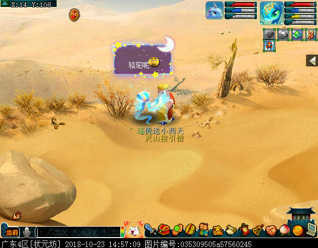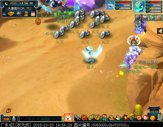 经过长达三年的迭代工程,大唐境外终于迎来了场景迭代。一提起这个场景,很多玩家都是望而生畏的,特别是在那个不能自动引路的年代,有多少小伙伴押镖跑商时把自己绕晕的?抓鬼、挖图党也特别厌倦这个地方,毕竟山高路远烧点卡。 那么,这个场景迭代得怎样了?要知道,这可是没经过测试服便全服放出的,看来策划很有信心!然后,笔者居然耐心地走了一遍该地图。。。发觉左边沙漠部分色调加深了,平添了点“枯藤老树昏鸦”的效果,看上去更显荒凉,不过,灵山接引僧那的骆驼远景没了,感觉这个缺失不太好。 当你越往东边走时,你会渐渐地发觉越来越有生机了,这部分美工处理得很好,在中间地带有落叶纷飞的过渡效果,越往右越显青葱。而且为了方便路痴玩家,在一些转弯地点也做了路标箭头的指引,感觉这个对新手玩家很友好。而且很有原来绕不过的荒山野地,这次也打通了,看来这次迭代不太好吐槽了,兄弟们撤!