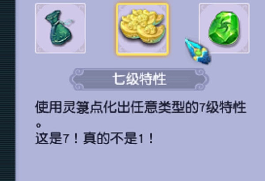 好运的号主成功地合成了七级特性,系统也奖励了号主一个成就,可以说这位玩家真的很拼,才放出不久便造就了7级特性,小编估计,下周可能八级特性都有一大批了。