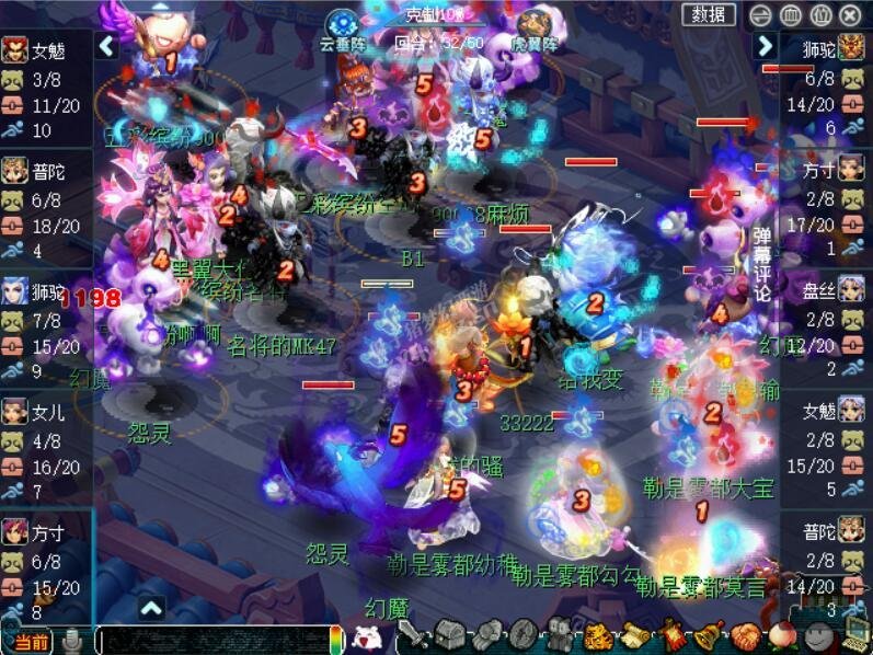 天元组 勒是雾都 虎阵(观战方)VS五彩缤纷 云阵(对战方)(胜) 勒是雾都的阵容是盘丝、方寸、狮驼、女魃、普陀。在上届的群雄逐鹿中,我们曾经看过禁疗的套路,利用盘丝的禁疗来阻止对面的恢复,特别是针对于清幻魔,由于幻魔现在只能神佑一次,不少选手会利用宝宝卡大金保证幻魔生存力,同时盘丝还藏着一手控蓝技能,必要时可通过控蓝来限制对面出手。 勒是雾都海选赛中与五彩缤纷的一役,虽说最后还是不敌五彩缤纷,但是盘丝的整场表现依旧是可圈可点。落花成泥的使用时机和封印的成功率都值得表扬,可盘丝的速度却是团队的硬伤,观战方虎阵大克对战方,但是面临这无法输出的尴尬,如果观战方的方寸换成高速女儿,拿到全场一速,是否又有不同的结果呢?如果是打诅咒流,女魃对于团队的作用其实是不如高伤龙宫来的实在,一方面可以配合狮驼打面伤,对面是单普陀辅助,所以恢复能力其实很有限,另一方面,连环配合亢龙点杀也会比幻魔随机咬来得实在,只要成功点杀,宝宝配合人物守尸,再通过禁疗来限制对方恢复,或许能扳回一局。可惜事已至此,说什么也是徒劳无功,好好再努力吧!
