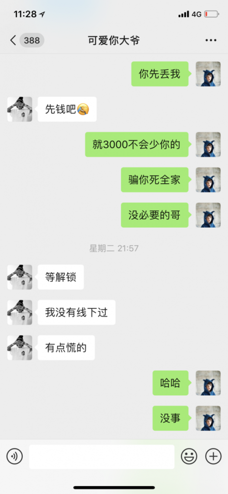 对方表示还没尝试过线下交易,怕被骗,称:“先钱吧。” ![]()