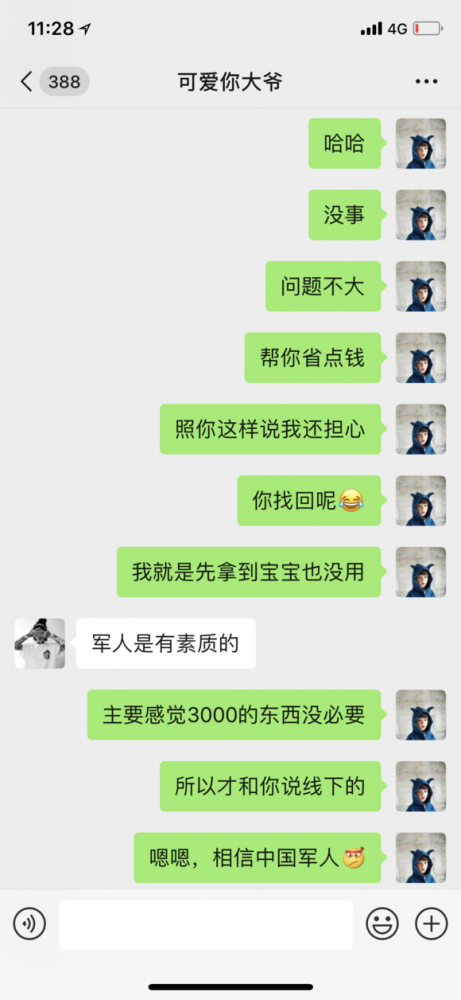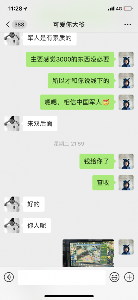 梦幻西游三令五申不要线下交易,建邺城天兵喉咙都喊哑了,可是还有人走线下交易。以前大家看过不少线下交易被骗,可是今天这起被骗有点特殊,是玩家主动要求线下交易为对方省手续费。今天,有位玩家在藏宝阁看了只8JN蛟龙,还价之后对方同意了,然而却主动要求线下交易。究竟发生了什么事情,让我们一起来看看。 玩家告诉我们,看到这只8JN蛟龙之后,自己还价3000感觉对方亏了,于是想帮着对方省手续费,主动要求线下,而对方自称军人(有待考证),然后玩家就先给钱后拿宝宝,奈何几天后就被对方找回了,这波操作属实是666。 玩家贴出了对话的截图。 上来也不啰嗦,直接开门见山:“3000呗。” 对方称:“你也可以打连善,就值钱了。最近领导逼得太紧了,就卖给你了。” ![]()