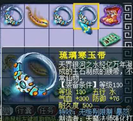 二、无级别暴怒腰带,与百万擦肩而过 有玩家在网上发出一张截图,新出一条无级别暴怒130级腰带,气血300,防御76,非常给力。 无级别愤怒130级腰带可是接近百万,无级别暴怒差距就大了,完美地和百万擦肩而过,不过也能卖出一个天价。无级别暴怒腰带给69级一速带还是不错的,毕竟经常挨打,愤怒涨得快,再搭配一个玉清特技是非常好的战术。