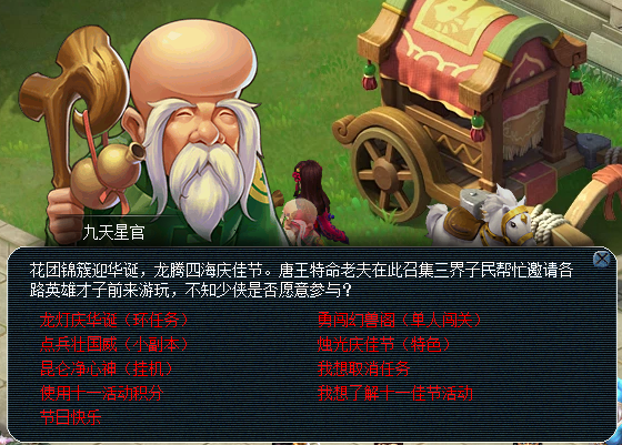本次小长假不但迎来了十一活动,随后又有重阳节活动衔接而上,在十一活动中,不但拥有以往熟悉的环任务、小副本、挂机等,更有特殊内容烟花晚会等。在十一活动之后衔接而上的即是重阳节活动。 ![]() 游戏截图 本次小长假不但迎来了十一活动,随后又有重阳节活动衔接而上,在十一活动中,不但拥有以往熟悉的环任务、小副本、挂机等,更有特殊内容烟花晚会等。在十一活动之后衔接而上的即是重阳节活动,没错,茱萸香囊,又到了搏一搏摩托变单车的时刻啦~~ 十一活动 ![]() 游戏截图 环任务 ![]() 游戏截图 小副本 ![]() 游戏截图 投放怪 ![]() 游戏截图 特殊内容