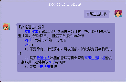 梦幻西游这个江湖每天都有新鲜事发生,今天给大家报道的是:1、道人带新兽决到来,比例瞬间飙升;2、不作不会死!女儿村点什么专用剑呢?3、太悲剧了!出善恶童子才来野生;4、血战道人亏得裤子都没了;5、狗托炼妖!出其不意善恶9技能泪妖。 一、道人带新兽决到来,比例瞬间飙升 昨天晚上维护公告出来,道人带高级进击必杀和高级进击法暴的消息传开后,藏宝阁梦幻币的比例瞬间飙升,很多区都涨了近10%。今天中午12点,道人出现后兽决瞬间被秒空,部分玩家买到了新兽决。 目前高级进击必杀和高级进击法暴的价格还没有一个固定的价格,刚出来数量比较少,很多土豪直接秒下来给宝宝打上,提升实力,前期价格会高一些。 两本新兽决可以被点化石吸附,要是以后出的宝宝带这两个技能或者高级宝图可以挖到,那么价格影响会非常大。 二、不作不会死!女儿村点什么专用剑呢? 有玩家在网上爆料,区里有一位女儿村玩家鉴定出一把专用140剑,伤害到了极点644,命中739,加29体质。问题是女角色鉴定的剑,无法转成男角色使用,这下就尴尬了。 这把专用140剑的初总伤达到890之高,满锻宝石妥妥的千伤神器。可惜是女角色鉴定,这下子怕是肠子都悔青了,出转性别系统才能拯救一下了。 网友:不作不会死!女儿村点什么专用剑呢? 三、太悲剧了!出善恶童子才来野生 有玩家在网上爆料,最近整了很多波炼妖,结果有点悲剧了。最后合出的8技能善恶童子还是野生的,心态一下子崩了。 这就有点悲剧了,要是最后一个8技能善恶童子是宝宝还能回点血,野生的话大多数会打蓝书永动机,要是打成还能卖点钱。 网友:喜闻乐见,这才是我熟悉的梦幻! 四、血战道人亏得裤子都没了 每次道人到来都会有玩家跟他血战一场,运气好的话赚的本满钵满,运气背的话就有点悲催。有一位玩家爆料,跟道人大战几回,亏的裤子都快没了,都给狗托做铺垫,稍微高端一点的兽决都没有。 运气背别上头,道人不是谁都能够战胜的。有玩家1本就出高进击法暴,有玩家10本都出不来,这就没得说了。 网友:我们区猜错道人位置连一本都抢不到,你能抢这么多?骗人的吧。 五、狗托炼妖!出其不意善恶9技能泪妖 有玩家爆料,用4技能泪妖和4技能狐不归回炉合双特殊宝宝,泪妖只认证了水攻,没想到竟然出了9技能出其不意善恶泪妖,这运气太好了! 狗托级别的炼妖,两个4技能竟然合出这么多技能,基本上所有技能都上去了。技能多就算了,这泪妖的资质和成长都非常好,狗托炼妖果然不同。 【叶子猪www.yzz.cn整理稿件。】 叶子猪梦幻西游玩家群:1群 325703083 (2000人),2群: 330102322 (千人);3群: 424986787 (游戏疑难解答);4群: 330518295 (商人物价);5群: 1063086037 (疑难解答);6群: 1045753197 (春心萌动);7群: 787195090 (活跃互动);8群: 720665628 (全民PK) [编辑:真实]