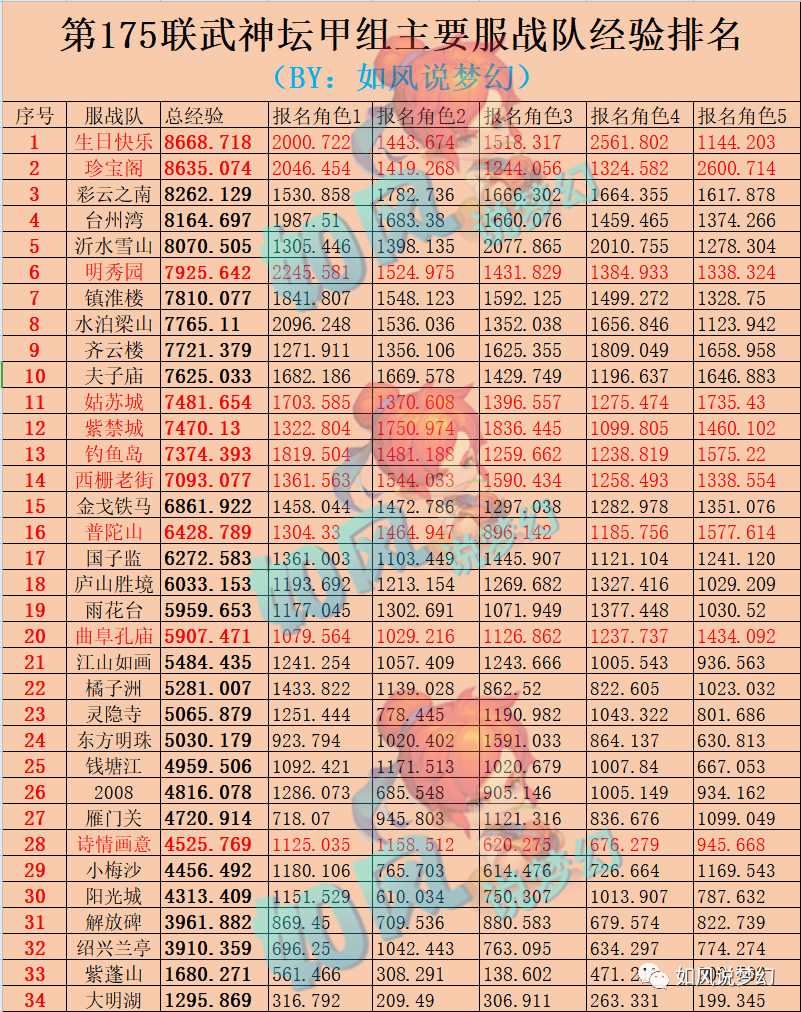 1、台州湾喜迎超级化生加盟,装备稳居全服前3? 台州湾服战队,是第1女主播小龙女所在的服战队,在武神坛拥有不少的铁杆粉丝。在175的各种比赛,剑会PK当中,他们也能战胜不少的豪门。不过台州湾的硬件一直非常神秘,很少对外曝光。 昨日,台州湾服务器的皇宫处,摆满了欢迎黄总加盟的摊位,这位黄总到底是何许人也呢?如风第一时间联系到了台州湾指挥桃子,原来黄总就是他们的新化生,看完这个号的装备之后,如风不得不说,这个黄总真的是一位低调的王者! 1、160级愤怒笑里腰带,熔炼之后防御101,气血415点,熔炼直接拉满! 2、160级流云+抗封1.77%的男头,160级水清+1.12%的鞋子,当今的PK版本,对于化生来说,抗封远比治疗的小蓝字要强很多! 3、160级第一晶清男衣服,初防315点,耐敏双加69点! 4、150级破甲神佑刀,15段后伤害675,体耐双加65点 这个号的5件装备,不输于当今武神坛任何一个顶级的化生!据了解,黄总当初只是姑苏城的一个帮战化生,没想实力居然如此强悍。 台州湾区内的3000万战神已经存了很久,他们封系、辅助、法系的硬件都非常强悍,只缺一个顶级的神器花果山,和他们一起冲刺服战冠军,有兴趣的老板可以直接联系如风。 二、175联武神坛甲组主要服战队经验排行,生日快乐排第1名,浩文率领的诗情画意排在了第28名,想进入16强必须取得4胜! 叶子猪梦幻西游玩家群:1群 325703083 (2000人),2群: 330102322 (千人);3群: 424986787 (游戏疑难解答);4群: 330518295 (商人物价);5群: 1063086037 (疑难解答);6群: 1045753197 (春心萌动);7群: 787195090 (活跃互动);8群: 720665628 (全民PK)