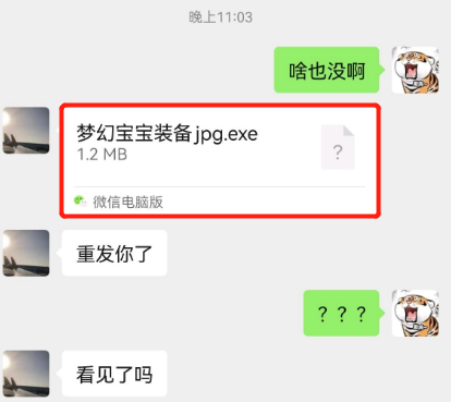 不知道大家是否记得,在还是QQ流行的年代,经常会有骗子QQ加好友发送木马进行盗号。今天就有一位玩家带大家重温当年的“文件骗术”。 (晒图人:君临极压无敌号) 这位龙太子玩家在世界收80级碎星决套装,有位59级神天兵加玩家私聊,表示自己有碎星决套装,但是现在在用口袋版上线,没办法把号上的碎星决套装发给玩家看。 神天兵表示,人在外面,要看套装图片可以留一个联系方式。然后交易方式是藏宝阁或者梦幻币。这句话看着没啥毛病,跟一般的交易对话差不多。龙太子让玩家直接开价,毕竟套装的价格就摆在那。而神天兵则直接让玩家加微信详谈。 其实这里就已经能看出神天兵不怀好意,但是玩家却有点好奇,现在这个年代还会有怎样的骗术呢?带着好奇,玩家添加了神天兵的微信。 玩家还来了一波拉扯,让神天兵直接开价。神天兵也随便开了个价格,价格多少不重要,主要是想让玩家上钩加微信。 这位神天兵玩家发了两张裂图的表情包。开始玩家还看不懂这是什么套路。 玩家表示图片看不到,不会是给我发病毒了吧?这位骗子居然还来了一句“2022年还有人玩这个”? 然后玩家把截图发过去,表示确实看不到神天兵所说的碎星决图片。这时骗子让玩家换电脑上微信,图片加载得快一些。 这次骗子发送的可不是什么图片或者表情,而是exe文件,这个点进去估计真的有被盗号的风险了。 没想到这年头还有如此低级的骗术,大家在添加陌生玩家微信的时候要多加小心! 叶子猪梦幻西游玩家群:1群 325703083 (2000人),2群: 330102322 (千人);3群: 424986787 (游戏疑难解答);4群: 330518295 (商人物价);5群: 1063086037 (疑难解答);6群: 1045753197 (春心萌动);7群: 787195090 (活跃互动);8群: 720665628 (全民PK)