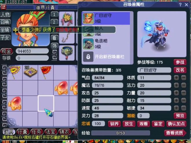 珍兽元、异兽元,是最近梦幻西游新出的游戏道具。顾名思义,珍兽元开启后,可以获得稀有宠。而异兽元,则可以获得变异宠。 今天,这位小伙伴就准备开6个异兽元! 要知道,变异宠一共分为两种。第一种,宠环所需的指定变异宠。第二种,不在宠环指定变异宠之列的,也可以被称为普通变异宠。当然了,这些普通变异宠之中,有几种是比较特殊的存在。比如:变异猫灵、变异毗舍童子、变异机关鸟……。 那么问题来了,玩家到底能开出什么样的变异宠呢?让我们拭目以待吧。 第1个,开出了变异广目巡守。 广目巡守所拥有的净台妙谛技能,是目前最火的特殊技能之一。虽然这只是变异的,但是洗个满技能,然后再打个书,当个血盾宠,还是蛮不错的。 第2个,开出了变异鲛人。 这基本就算是送了。 第3个,开出了变异龟丞相! 这可是宠环所需的指定变异宠之一!玩家对于剩余的3个异兽元,充满了期待。 第4个,开出了变异金身罗汉。 虽然携带的等级高,但是本身没有特殊技能。而且,资质也不是特别的出众。只能是用于当成普通的变异宠,交宠环了。哎,难受。 第5个,开出了变异虾兵。 跟变异龟丞相一样,都是宠环所需的指定变异宠之一! 第6个,开出了变异老虎。 6个异兽元,玩家开出了3只宠环所需的指定变异宠!这运气,似乎还不错哦。 小伙伴们,你们觉得这位玩家的运气如何?你们开异兽元时,都获得了什么变异宠?来和大家分享下吧。 叶子猪梦幻西游玩家群:1群 325703083 (2000人),2群: 330102322 (千人);3群: 424986787 (游戏疑难解答);4群: 330518295 (商人物价);5群: 1063086037 (疑难解答);6群: 1045753197 (春心萌动);7群: 787195090 (活跃互动);8群: 720665628 (全民PK)