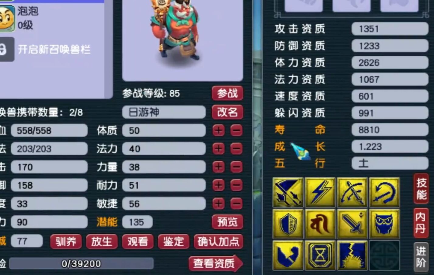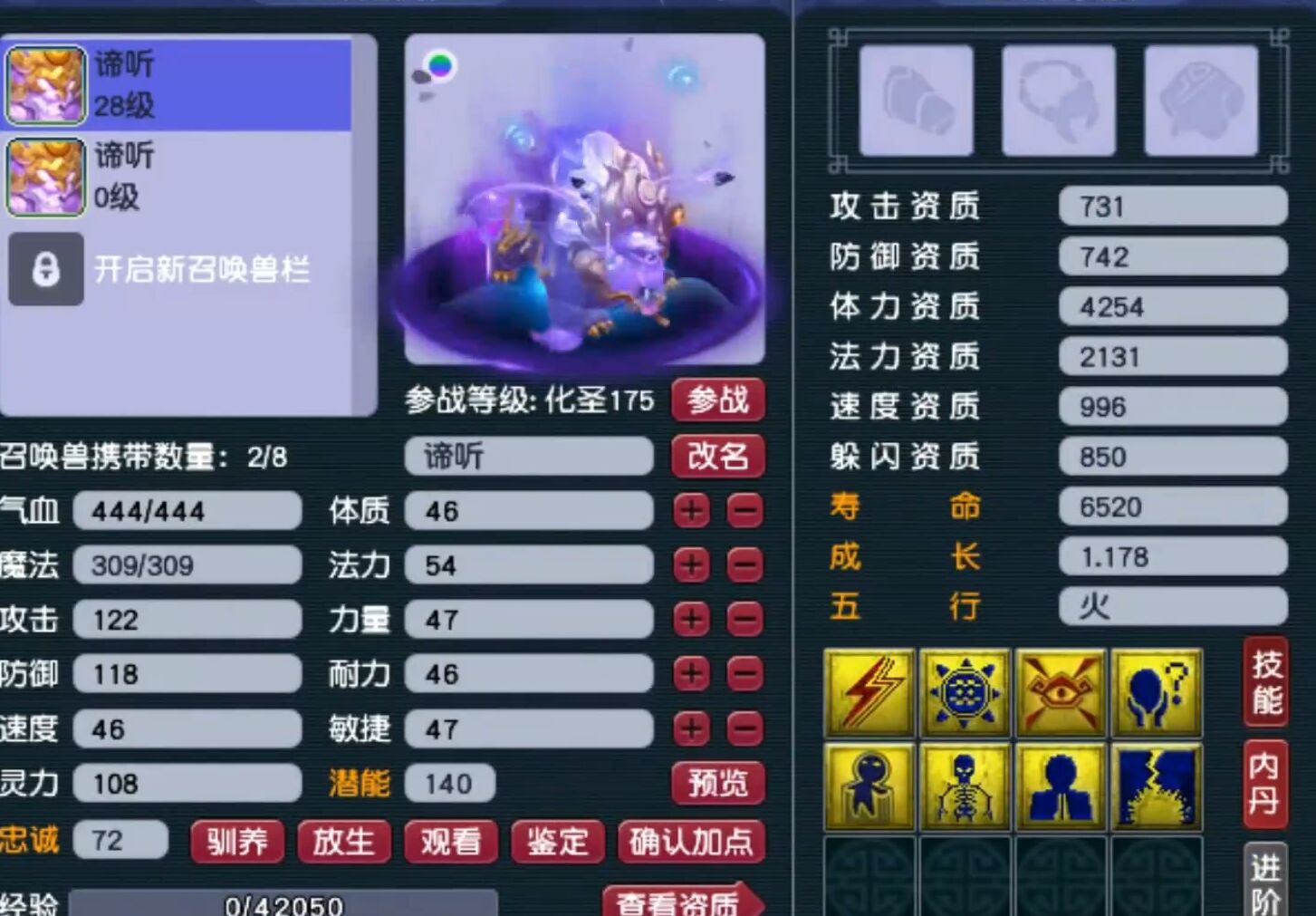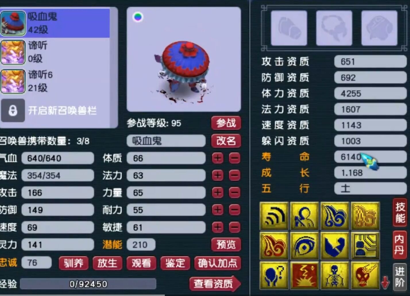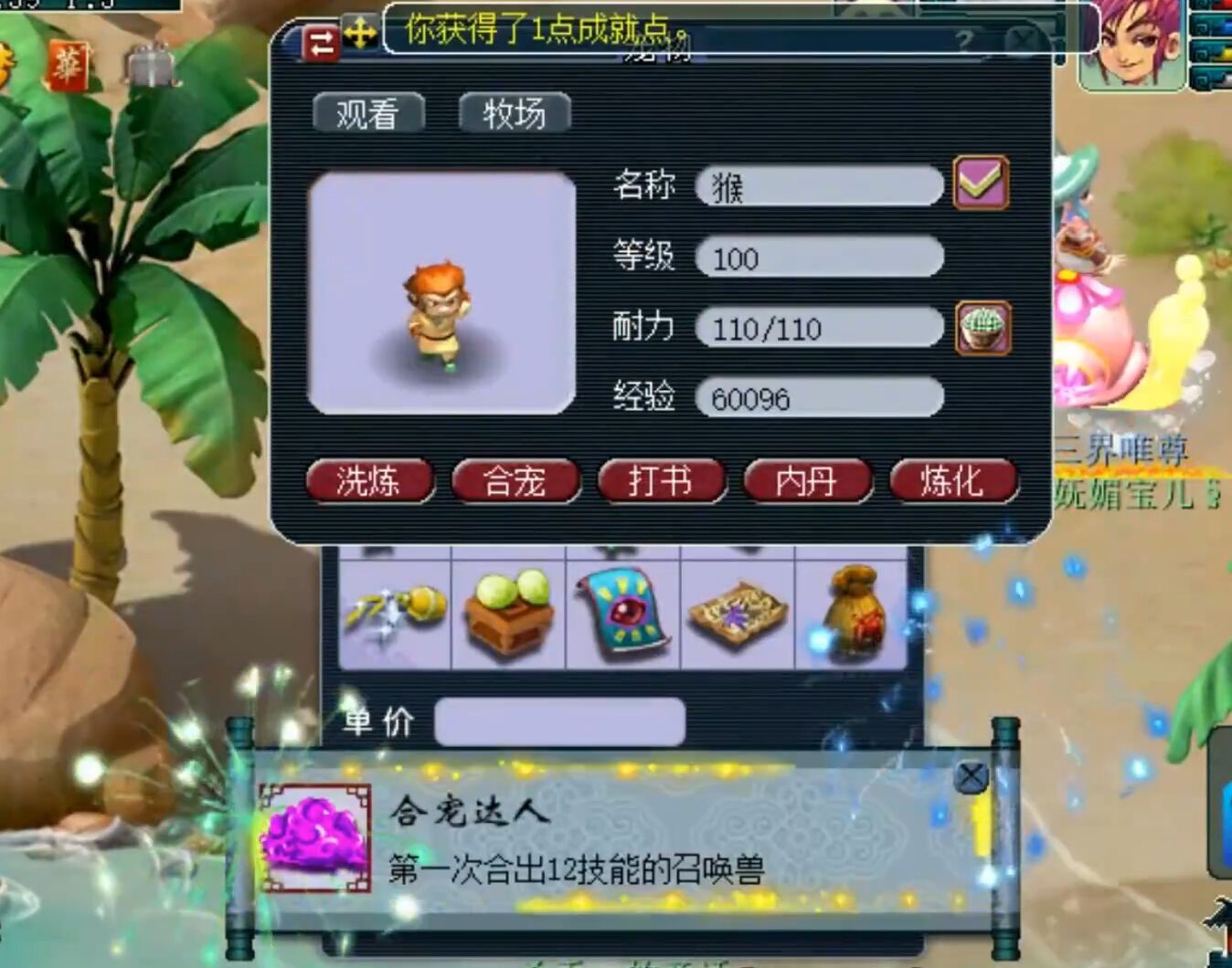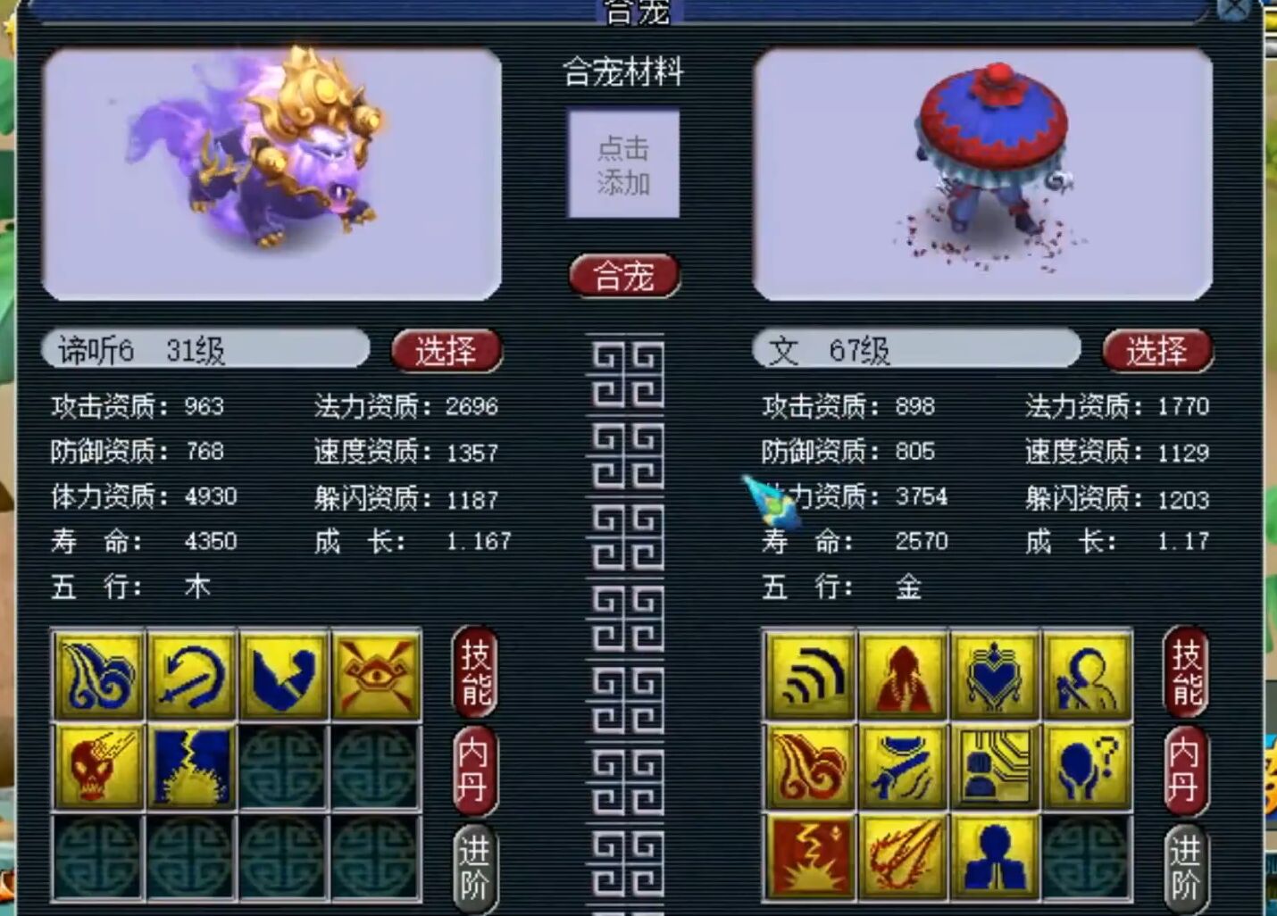 相对鉴定装备而言,炼妖合宠可能很难炼妖出价值百万以上的召唤兽胚子,不像鉴定装备那样有几率可以鉴定出价值数百万的武器或者装备。但是炼妖的成本不比鉴定装备低,风险比鉴定装备还要高,一不小心,上万元的胚子就打水漂了。目前最流行且成本最高的炼妖就是谛听炼妖,一组炼妖的成本都是几千块钱起步的。当然,运气好的话合出翻页谛听就可以让你改变人生。近日,某主播直播高端炼妖,6技能谛听回炉,结果狂炸翻页成就,连13技能的成就都出来了,瞬间直呼血赚。 当时准备的炼妖胚子如上图所示,主宠是6技能谛听,附加观照万象特殊技能。副宠是11技能吸血鬼,没有特殊技能,11+6+2技能回炉,有很大的几率可以合出翻页技能胚子。 点击炼妖确定按钮那一刻,立马弹出了四个成就点,翻页成就都出来了。 首先爆出来的是两个绿色成就,分别是第一次合出10技能、11技能炼妖成就。随后又接着爆出了两个红色成就,具体如下: 看到12技能成就那一刻就已经让主播激动直呼逆袭啦了,最后又蹦出了一个13技能成就,意味着很有可能合出来的是13技能谛听,结果还是没有实现目标。 合出来的不是谛听,而是上图这只胚子,13技能吸血鬼翻页胚子,资质低到无法看。没办法,只能继续高回炉重造了。 回炉的主宠依然选择了6技能谛听,成长1.212,副宠是13技能翻页吸血鬼,成长吃真经吃到了1.193。这一组炼妖玩得有点过火了,13+6+2技能回炉,合出20技能都是有可能的。 不过理想很丰满,现实很残酷。那有这么随随便便就可以合出翻页谛听,否则就没有那么值钱了。这次爆出了主宠谛听,但是技能仅有8个。不过相对6技能来说也升值了不少了。 前面两组炼妖都没有逆袭,所以土豪老板选择继续挑战炼妖几率。主宠是8技能魔化童子,同时携带了净台妙谛以及魔诀特殊技能,副宠是11技能日游神。 虽然弹出了11技能成就,但是合出来不是土豪想要的魔化童子,而是11技能日游神,净台妙谛特殊技能也附加上去了。 从上述三组炼妖来看,翻页胚子还是可以合出来的,但想要合出值钱的翻页胚子比无级别还要难。 叶子猪梦幻西游玩家群:1群 325703083 (2000人),2群: 330102322 (千人);3群: 424986787 (游戏疑难解答);4群: 330518295 (商人物价);5群: 1063086037 (疑难解答);6群: 1045753197 (春心萌动);7群: 787195090 (活跃互动);8群: 720665628 (全民PK)