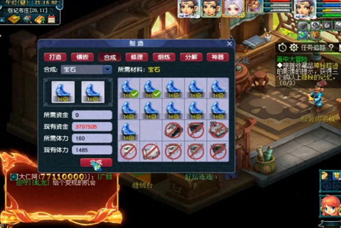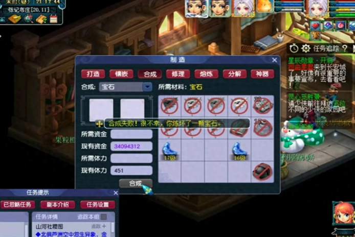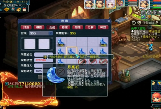 宝石作为梦幻西游提升装备属性的必备道具,可以说每一件装备的成型都离不开宝石的镶嵌。目前宝石分为很多种类,但比较热门的就是红玛瑙、太阳石、黑宝石以及月亮石等。宝石的等级越高,附加的属性就越多,所以土豪玩家都会想方设法砸钱合成高级宝石。目前宝石最高等级为19级,合成11级以上的宝石会出现失败几率。近日,某土豪耗时6个月,斥资50多万元收集了512个11级宝石,准备冲击合成全服第一个19级月亮石。下面一起来围观一下。 最近大家有没有发现月亮石的价格上涨了?没错,原因就是上图这位土豪玩家在大量收购,汇集了多个服务器的月亮石宝石。为了这次宝石的合成,据了解,土豪花费了6个月去准备,投入了成本50多万,一共收集了512个11级的宝石,最终的目的就是合成19级月亮石。如上图损所示,目前所有的低级宝石都合成了15级,坐等一口气合出19级。 按照目前藏宝阁上的标价,一颗11级月亮石的价格为1000元,那么500多颗就是50多万,这还没有把合成失败的成本计算进去。考虑失败率的话,成本不低于60万。闲话不多说,直播开始,先把15级合成16级,结果开局就王炸,立马损失了一颗15级宝石,大几千块钱就这样没了。 有一种出师不利的感觉,万事开头难,刚开始合成宝石就被系统几率教训了一番,直接不见了3个15级宝石。 损失几万块之后才合成了第一颗16级宝石,可想而知,宝石等级越高越难合成。 经过一番折腾之后,终于把所有的15级宝石都合成了,不过运气有点背,几十个15级宝石,最终得到的16级月亮石数量如上图所示,得到了11个16级宝石。打铁趁热,继续合成17级宝石。 这次的运气还不错,首发就成功合出了第一颗17级月亮石。 然而好运气并没有一直围绕在身边,第二次操作又合成失败了,不见了一颗16级宝石,鼠标点一点,上万块就没了。 连续合成失败2次,这个几率让土豪玩家心态崩了。 但是合成已经到这种地步了,没有回头的说法,咬紧牙关继续前进,最后合出了3个17级,剩余1个16级。从这个局面来看,已经没有机会合成19级宝石了,最多合成1个18级。 很不幸,连18级的愿望都实现不了,17级合成出现两连败,最终以失败而告终,老板的心在滴血。 叶子猪梦幻西游玩家群:1群 325703083 (2000人),2群: 330102322 (千人);3群: 424986787 (游戏疑难解答);4群: 330518295 (商人物价);5群: 1063086037 (疑难解答);6群: 1045753197 (春心萌动);7群: 787195090 (活跃互动);8群: 720665628 (全民PK)