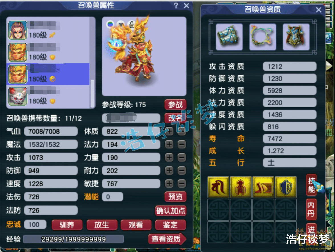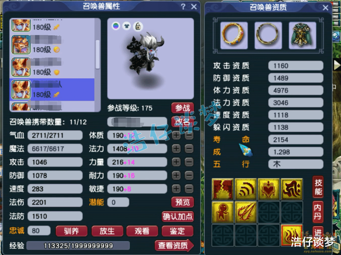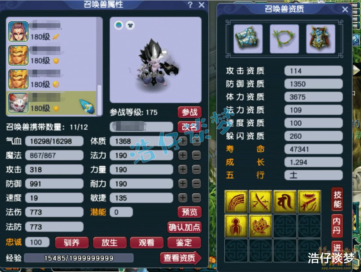 Hello大家好,我是浩仔!关注浩仔,每天给你带来最新梦幻西游游戏资讯!以下点评仅代表个人意见,不代表官方或平台立场。 说到现在最火爆的比赛,浩仔觉得跨服帮派联赛绝对是有话语权的!与其他赛事不同,帮派联赛是多个团队协作的战斗,能把这么多队伍组织到一起,难度非常大!浩仔所在的帮派,就是区内1号联赛帮,每次帮战都是150满员进场,由此可见玩家对帮派联赛的喜爱!化生寺是目前帮派联赛中比较吃香的门派之一,也是各种阵容不可或缺的辅助门派!一个硬件不错的化生寺,必定是各种队伍争抢的香饽饽!本篇文章浩仔要给大家展示的,就是一个175级帮战化生寺!他的硬件打帮派联赛就是俩字“完美”,一起来看看吧! 175级化生寺没打临时符的面板属性,打符之后防御能达到3200左右的,法防1700多,打帮派联赛非常硬了! 130级带罗汉的雾中仙套男头,打了13锻月亮石! 160级带破甲的巴蛇套项链,熔炼后初灵234,打了13锻舍利子! 140级带水清的傀儡妖套铠甲,熔炼后耐敏双加46,打了14锻月亮石! 160级带笑里的雾中仙套鞋子,打了14锻黑宝石! 150级愤怒雾中仙套腰带,打了13锻黑宝石! 130级晶清诀武器,熔炼后加25敏减5体,打了13锻太阳石! 戒指和耳饰下排都是双速度一治疗。佩饰下排双防御一法防,手镯下排双法防一防御,特效6级健步如飞! 9技能血攻壁垒童子,成长资质非常完美,帮战很好用! 7技能血攻善恶童子,攻资和成长很极限,可以做开场首发宠! 7技能全力瞬击童子,拉出来可以收割残血! 3技能夜舞倾城夜罗刹,防慈航用的利器! 6技能千速血宠童子,可以给自己配速! 7技能遗志进暴须弥童子,套装带的是高进暴,不要高神,极限输出! 8技能遗志进暴须弥童子,套装带的是高进暴,同样没有高神! 7技能血攻力劈狂豹,也可以做开场首发宠! 4技能法防净台血宠广目巡守! 4技能净台千速血宠广目巡守,特性是闪现! 6技能龟速净台血宠魔化童子! 好了,这个175级化生寺展示完毕,虽然不是标准的14+9号,但是硬件已经相当不错了,打帮派联赛能进入一线的队伍,跟15或者16锻的输出搭配都没问题,而且这种号不愁没有队友,一定是被争抢的香饽饽!各位喜欢这个化生寺吗?发表一下你的看法吧! 叶子猪梦幻西游玩家群:1群 325703083 (2000人),2群: 330102322 (千人);3群: 424986787 (游戏疑难解答);4群: 330518295 (商人物价);5群: 1063086037 (疑难解答);6群: 1045753197 (春心萌动);7群: 787195090 (活跃互动);8群: 720665628 (全民PK)