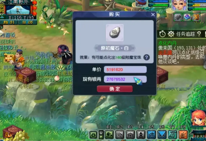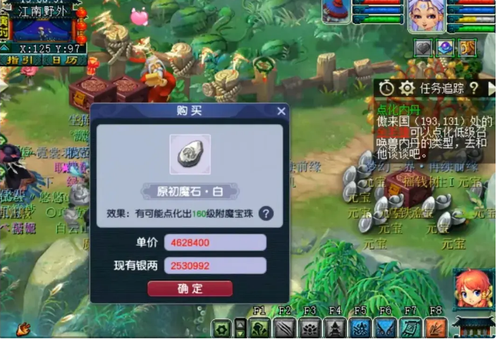 从本年1月3日到现在,玩法几乎一直在调整与改动,涉及了方方面面,小到到师门任务,大到生死劫剧情奖励。而让大家满怀期待的云游道人玩法已经成为了过去式,代替云游道人的却是各种新玩法。其中最火热的就是最近新出的附魔宝珠玩法,系统售卖原初魔石以及褪色宝珠,一起点化之后,有几率获得相应等级的附魔宝珠。 具体玩法是这样的,先去神机道长npc花费1万游戏币寻找魔石巨人的下落,然后通过魔石巨人购买原初魔石。附魔宝珠的等级有100-160级,各个等级的原初魔石的价格都不一样。得到原初魔石之后,再去宝石商人处花1万游戏币购买褪色宝珠,与原初魔石一起点化。每点化一次就积攒1点祈福值,30点必出附魔宝珠。这个玩法类似于套装的点化。当然,运气好的时候,点化一次就得到附魔宝珠了。 下面怒砸6000万挑战系统几率,看看到底能开出多少个附魔宝珠? 等级最低的是绿色的原初魔石,初次刷新的价格仅150万左右。意味着花费150万就有几率获得一个100级附魔宝珠,血赚1000多万,但事实没有那么简单。 附魔宝珠玩法刚上线那会儿,九分就第一时间玩了一手。当时直接购买120级的,初始价格185万左右,然后购买一次涨一点,一气之下点化了18次,成本花费3300万,最后才出了一个120级的附魔宝珠。对于那些更等级的附魔宝珠的几率,真的不敢想象。 下面花费6000万的成本购买160级附魔宝珠,看看几率是怎么样的。如上图所示,初次刷新价格460万。 随着购买次数越多,价格就越高,第一次460万,第二次直接涨到了520万,这个类似于之前的云游道人售卖高级兽诀。 一口气购买了5个160级的原初魔石,成本2200万左右。运气有点背,购买过程中没有爆,运气好的话,购买一个可能会爆出六七个。这里提醒一下,原初魔石是可以摆摊交易的,假如买到爆数量的,直接卖给商人也能赚不少。 褪色宝珠与原初魔石点化之后就获得160级的褪色宝珠。同时获得一点祈福值。 点化了6次依然没有成功,可见几率并没有我们想象的那么高,3000万砸进去,积攒了6点祈福值,而且不能退出,一旦退出了,那么祈福值就消失,这个需要特别注意。 咬咬牙又购买了3000万游戏币,450块的成本在这里了。 好了,6000万游戏币就这样没了,换来的是12点没用的祈福值。 叶子猪梦幻西游玩家群:1群 325703083 (2000人),2群: 330102322 (千人);3群: 424986787 (游戏疑难解答);4群: 330518295 (商人物价);5群: 1063086037 (疑难解答);6群: 1045753197 (春心萌动);7群: 787195090 (活跃互动);8群: 720665628 (全民PK)