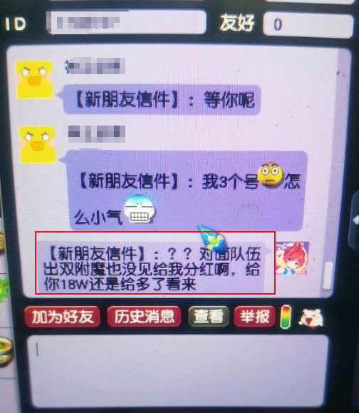 《梦幻西游》电脑版嘉年华活动已经放出一段时间,大家都刷到什么进度呢?有位毅力帝战绩惊人,在大家还在苦苦刷活动时,他已经肝出了满级固伤腰带!下面,就让极光带大家详细去看看! 一、毅力帝肝出满级活动腰带 对于很多小伙伴来说,刷嘉年华活动最大的执念,就是满级活动腰带了。不过满级固伤腰带需要活动积分4.2W,就算每天把100环和小副本拉满,也需要20天以上。近日,有位毅力帝发来投稿,他已经刷出了满级活动腰带,而今天距离活动开启日也才仅仅过了15天。从这位玩家的战绩来看,这条腰带大概率是全服首条满级活动腰带! 极光每天拉满环和小副本,现在才刷到34级,距离42级还有不小的距离。看着毅力帝的战斗成果,极光觉得肝已经在隐隐作疼了。 二、这把无级别神佑枪就很秀 对于有实力的X9大佬来说,选择装备光有无级别肯定不够牌面,最好还加上核心特效或者特技。近日,有位小伙伴在鉴定武器时,就炸出了一把无级别双蓝字神器。这是一把120枪,初总伤564.3,熔炼后力敏双加39点。 无级别+神佑,是X9PK大佬的最爱,而且它还有力敏双加!它唯一的缺点,就是属性爆的不多,不然的话又是一把巅峰神器! 三、奸商再出骚操作垄断区内三级药 挑战新神器魔息角之怒,需要任务道具佛光舍利子或九转回魂丹,这给了商人赚钱契机!有位小伙伴发来投稿,他们区有一位奸商搞起了垄断操作,将摊位正常价的佛光舍利子、九转秒空,然后自己高价摆摊卖。一般情况下,佛光舍利子和九转只要1.4W就能买到,奸商倒一手后卖到5W,利润直接翻了3.5倍。 玩家有点想不通,三药属于产出大消耗大的的道具,搞垄断真的能赚钱吗? 四、碰见这种队友很难不头疼 出好东西分不分红,这种唯心问题很难有统一的答案,但是你见过分红之后还不满足的队友吗?近日,有位小伙伴在混队刷通天时,运气爆表拿到了一颗附魔宝珠。拿到附魔之后,队长立刻发来临时,要求分红。想着队长带队不容易,于是小伙伴就给了对方18W,结果队长不满意,表示要加钱。 给分红是情面、不给是本分,碰见这种贪心不足的队友,小伙伴有点脑壳疼。 今天的新鲜事到此结束,你们刷通天拿到附魔会给队友分红吗?欢迎在评论区留言分享~ 叶子猪梦幻西游玩家群:1群 325703083 (2000人),2群: 330102322 (千人);3群: 424986787 (游戏疑难解答);4群: 330518295 (商人物价);5群: 1063086037 (疑难解答);6群: 1045753197 (春心萌动);7群: 787195090 (活跃互动);8群: 720665628 (全民PK)