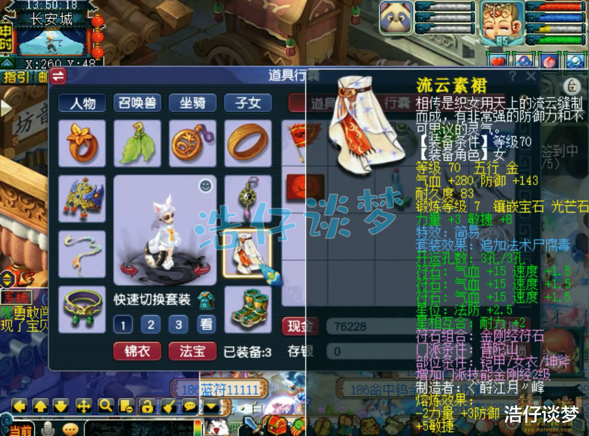 Hello大家好,我是浩仔!关注浩仔,每天给你带来最新梦幻西游游戏资讯!以下点评仅代表个人意见,不代表官方或平台立场。 有很长一段时间没给大家带来取号的资源了,主要是现在取出的基本上都是空号,很多玩家买来都会自己搭配装备和宝宝,所有没有太大的看点!而今天我给大家带来的,就是一个久违的取号资源,她的装备比较齐全,是一个很不错的天地号!一起来看看吧! 69级普陀山没打临时符的面板属性,常规的辅助普陀山都是体耐敏加点,有抗性还有速度,能站住才能更好地辅助队友! 60级罗汉金钟女头,打了6锻月亮石,对于高等级来说这就是任务装备,但是对于69级来说,这种装备能打PK! 60级水清诀项链,人造的可以熔炼,熔炼后初灵100,打了6锻舍利子! 70级简易尸腐毒套女衣,熔炼后力敏双加14,打了7锻光芒石! 70级带吸血的简易狂豹套鞋子,打了7锻黑宝石! 60级愤怒精致腰带,打了7锻黑宝石! 60级精致晶清诀武器,熔炼后加18敏、减1耐,打了7锻太阳石! 戒指和耳饰下排都是双治疗一速度,佩饰下排气血防御法防,手镯下排双防御一法防,全部打了6锻星辉石,特效6级回春之术!作为69级的主力辅助,普陀山多堆治疗量很不错,毕竟全队的辅助全靠她! 新买的号只有装备没有宝宝!好了,这就是取出的69级普陀山全号了,她注重的是特技,所以并没有追求敏捷或者体耐等动物套装,装备虽然不算太高端,但是对于69级来说,这是除了无级别之外最顶端的装备了!而且她凑齐了愤怒4特技,任务中操作很灵活,无论是杀何种难度任务,她都是团队的后勤保障!现在买家只需要再买两只血宠和一攻一法两只输出宝宝,基本可以通刷所有难度任务了! 叶子猪梦幻西游玩家群:1群 325703083 (2000人),2群: 330102322 (千人);3群: 424986787 (游戏疑难解答);4群: 330518295 (商人物价);5群: 1063086037 (疑难解答);6群: 1045753197 (春心萌动);7群: 787195090 (活跃互动);8群: 720665628 (全民PK)