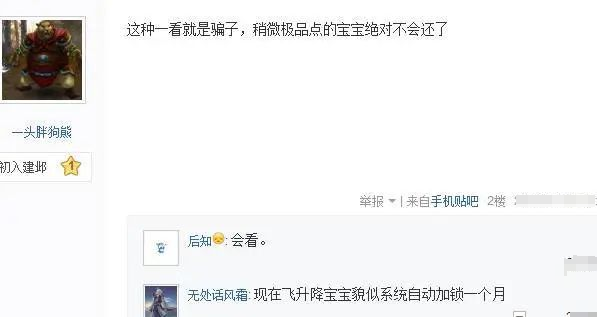 大家都知道,梦幻西游飞升之后的宝宝等级可以从180级降下来,当然,最高也就是比自己高10级,有很多五开玩家用的宝宝就是自己飞升降下来的,高等级的全红吸血鬼或者鬼将都是非常便宜的,正常来说139级的全红4技能吸血鬼或者鬼将都是700左右,但是180级的4技能全红宝宝只卖400多一点,很多五开都是这样省钱的 后来梦幻西游更新了,飞升降宝宝等级之后,宝宝会绑定账号一个月,一个月才能交易,在更新之前,很多骗子都是通过这样的手段来骗宝宝的,上面这个145级的大唐官府就在世界频道喊话帮人飞升降宝宝,一只50万 网友们也一致认为,飞升帮忙降宝宝的都是骗子 准备飞升的这个玩家童叟无欺,只收50万就帮你降宝宝等级,你遇到过这样的好事么 这个要飞升的玩家都等不及了,问我降不降,不降的话就准备点了,难道是欲擒故纵的手段? 准备飞升的这个玩家已经等不及了,问我需要多久,我说你要是着急飞升,你就先飞,我再找别人 没想到啊,这个人就真的先飞了,说着急跑商呢,刚开始以为是骗的,点了刷新后发现,这人的等级变成了130级,真的飞升了,而且真的去跑商了 真的是喷了一口老血,这究竟是谁调戏谁,楼主瞬间懵逼了,玩了十几年梦幻,这是第一次遇到这么实在的老实人,他可能真的不知道飞升后宝宝要等一个月时间才能交易,可能是个没有看梦幻维护公告的老玩家,如此单纯的玩家还是第一次遇到 叶子猪梦幻西游玩家群:1群 325703083 (2000人),2群: 330102322 (千人);3群: 424986787 (游戏疑难解答);4群: 330518295 (商人物价);5群: 1063086037 (疑难解答);6群: 1045753197 (春心萌动);7群: 787195090 (活跃互动);8群: 720665628 (全民PK) [编辑:极光]