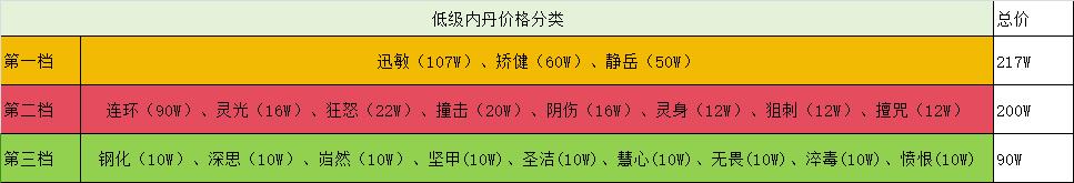 同样都是在【梦幻西游】电脑版中搬砖赚钱,有人五开十开月入过万,有人却赚个零花钱。根本原因除了效率差距外,就是对细节的掌握了。今天,极光就和大家分享一个内丹点化套路,5开每个月能赚800万! 一、内丹任务介绍 大家在完成普通副本【齐天大圣】后,可以在花果山NPC那里领取内丹点化任务,上交两个低级内丹随机获得一个低级内丹。(注意:在副本结束前领取任务,副本结束后无法领取)。 在大部分情况下,玩家都会上交两个不入流的低内丹,至于结果好坏全看运气。因为值钱的低内丹太少,很多人在追梦的时候都是以失败而告终,长此以往,大家都不愿意接受这个任务。 其实,点化内丹也是有技巧的,掌握技巧就能发家致富。 二、低内丹介绍 首先系统把低内丹分成三挡,迅敏、矫健、静岳属于第一档,而连环、灵光、狂怒、撞击、阴伤、灵身、狙刺、擅咒属于第二档,钢化、深思、岿然、坚甲、圣洁、慧心、无畏、淬毒、愤恨属于第三档。而在目前的市场中,第一档的内丹是最贵的,比如迅敏能卖到120W左右。第三档是不值钱的,只能卖10W。 内丹点化任务上交两个第三档,会从所有低内丹中随机选择。如果是上交1个第二档+1个第三档,那么获得低内丹只从第一档和第二档中选择,排除掉了不值钱的第三档。 以曲阜为例,所有内丹加起来的总价为217+200+90=507W,一共有20个低内丹,平均每个内丹价值期望为25.3W。 而大家在上交两个第三档内丹时,成本价位10+10=20W。考虑到内丹价值期望为25W,一次点化能赚5W左右。 如果选择第二种套路,上交1个第一档内丹+1个第二档内丹,那么平均每个内丹价值期望为(217+200)/11=37.9W。而购买这两类内丹成本为10+10=22W左右,所以一次点化能赚16W左右。 同样都是点化,这里严重推荐第二种点化,每次能赚16W,五开就是80W。而一周能完成2次副本,一个月就是8次,等于每个月赚了640W。 小结 对于五开玩家来说,当硬件很难提升的时候,不妨在细节方面下功夫。掌握好套路,就算你的投入没有别人多,照样能赚钱。 叶子猪梦幻西游玩家群:1群 325703083 (2000人),2群: 330102322 (千人);3群: 424986787 (游戏疑难解答);4群: 330518295 (商人物价);5群: 1063086037 (疑难解答);6群: 1045753197 (春心萌动);7群: 787195090 (活跃互动);8群: 720665628 (全民PK)