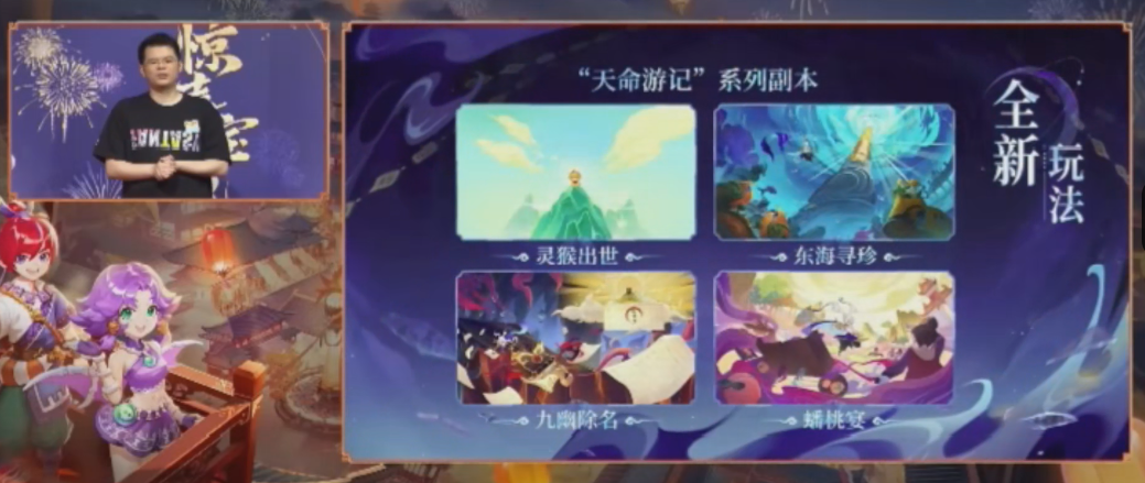 如果错过了昨天的直播,大家可以点击上方视频查看小奇的完整爆料过程,为了方便大家观看,已根据视频中的声音自动生成字幕,所以会出现有个别错字的情况,忘大家体谅。 一、全新副本 第一个公布的内容为“天命游记”副本,这个副本共分为灵猴出世、东海寻珍、九幽除名、蟠桃园等四个,每个副本不仅有属于自己的专属剧情,还记录了斗战胜佛的成长历程。就测试服体验来看,天命游记的战斗难度中等偏下,在副本过程中还可以收集到特殊装备来提升输出能力! 第二个公布的内容就是五行山的全新召唤兽,分别是65级参战的炼丹童子、105级参战的五行山神、渡劫155级参战的司辰侍者和化圣175级参战的自在心猿。 在这里小奇特别强调了自在心猿的参战等级以及资质成长,并同毗舍童子做了类比,来说明它的强大之处。 二、超级技能搭配坐骑灵珠上线,最后一只巡守居然是小奇做的? 第三个公布的内容为超级技能,虽说目前它们尚处于动态调整状态,但这种比高级技能更加强力的技能上线后,肯定会对游戏环境产生一定变化。 第四个公布的就是坐骑灵珠了,这个东西本质上就是坐骑的第二个装备,可在召唤宝宝后根据玄灵珠效果提升一定的作战能力,有需求的小伙伴可以根据自身情况灵活选购。 第五个公布的内容为多闻巡守,身为四大巡守最后一个出场的它可以根据力量、成长来提升伤害,但也会根据力量扣除防御。也就是说,这个技能可能更适合全力、高伤召唤兽使用。另外,这只巡守还是小奇亲手做的,具体效果大家可以期待一下! 爆料完巡守后,小奇表示《梦幻西游》电脑版全新资料片《天命之路》将在2024年1月16日登陆测试服,于2024年1月23日上线全服! 三、文化联动再出新招,奶龙将降临梦幻西游世界 公布第六个内容前,小奇先回顾了下近两年同非遗文化、博物馆的联动内容、联动玩法以及锦衣,表达了《梦幻西游》电脑版对于传统文化的尊重和传承。 随后,变公布了在2024年要同山西历史文化联动的消息,这次联动不仅会结合非遗文化推出新玩法,大家也能在游戏中看到更多美轮美奂的场景,非常值得期待。 第七个公布的内容就是同奶龙的联动了,根据以往的联动策略和曝光的地图,这个联动大概会同情人节锦衣联动上线,如何你也很喜欢奶龙呆萌可爱的形象,千万不要错过和它同游三界的机会哦! 四、群雄逐鹿赛事体系升级,萌新杯即将全服上线 第八个公布的内容同群雄逐鹿有关,该赛事将在群雄逐鹿的基础上进行升级,变成齐聚各路高手的“超级联赛”。猪队长推测,这个赛事应该会涵盖69-175六个组别的PK,竞争激烈的同时也会有更多的赛事奖励,非常值得期待。 第九个公布的内容为萌新杯将2024年三月份全服上线,这个消息就意味着热爱49、59级PK的玩家有了更高的竞技舞台,大家可以在这个舞台上发挥出自己的能力,算是一个相当不错利好消息! 小结 总的来说,这次爆料的内容相当丰富,不仅有全新地图和全新玩法,还有新召唤兽和超级技能,它们的出现势必会对当下的PK环境、任务环境产生影响,再加上联动玩法、赛事体系的全面升级,2024年的梦幻西游肯定会开创出一个全新纪元! 叶子猪梦幻西游玩家群:1群 325703083 (2000人),2群: 330102322 (千人);3群: 424986787 (游戏疑难解答);4群: 330518295 (商人物价);5群: 1063086037 (疑难解答);6群: 1045753197 (春心萌动);7群: 787195090 (活跃互动);8群: 720665628 (全民PK) [编辑:极光]
