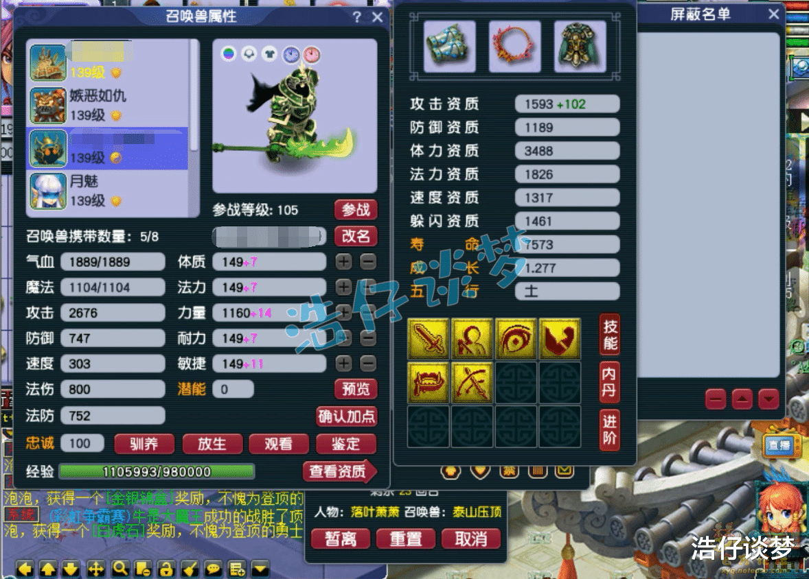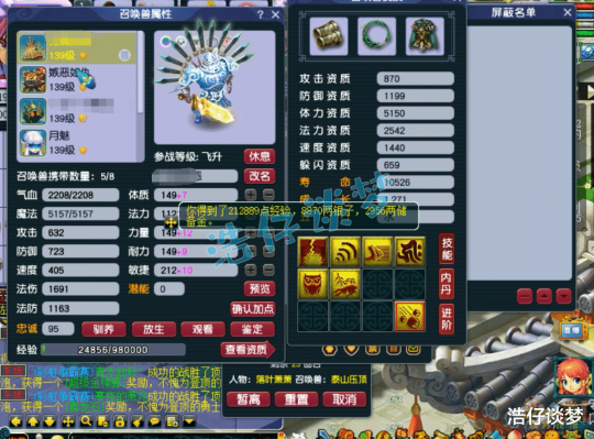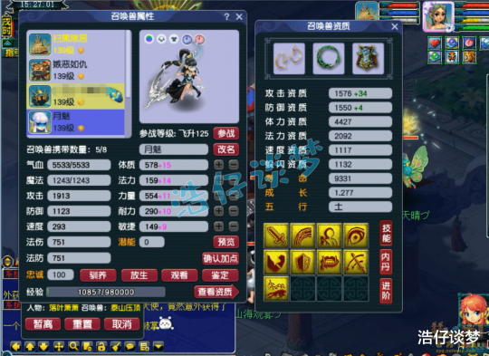 Hello大家好,我是浩仔!关注浩仔,每天给你带来最新梦幻西游游戏资讯!以下点评仅代表个人意见,不代表官方或平台立场。上篇文章给大家展示了一个109级魔王寨,百套装备加身,法系必备特技都有,非常适合刷各种难度任务!其实对于法系来说特技并不需要太多,只要有一个必备的琴音三叠就可以了,有能力就帮队伍背一个晶清诀大特技,没能力就选属性极限的装备!对于法系来说最重要的是项链的灵力和5孔装备,因为一件5孔装备可以镶嵌最高符石套装,变相地提升灵力!本篇文章浩仔要给大家带来的,是一个129竞速神木林的展示,一起来欣赏一下吧! 号是129级神木林,可惜没有展示他的面板属性,直接看他的装备吧!头盔是120级琴音三叠蜃气妖套,打了12锻月亮石! 130级简易蜃气妖套项链,熔炼后初灵208,打了12锻舍利子! 120级带停陷术的蜃气妖套铠甲,熔炼后体魔双加43,打了12锻舍利子! 130级简易蜃气妖套鞋子,打了11锻黑宝石! 120级愤怒蜃气妖套腰带,打了12锻黑宝石! 120级高伤武器,熔炼后魔体双加48,打了12锻太阳石,伤害达到了596,非常不错! 耳饰下排双法暴一法伤结果,戒指下排双法伤一法暴,佩饰下排气血防御格挡,手镯下排双防御一气血,特效都是6级血气方刚! 7技能敏须弥大力金刚,法宠大力金刚还是比较少见的,配合高敏速度快,能用来竞速! 8技能高连血攻机关兽,成长资质很极限,各种难度任务通用,法宠机关兽比较常见,多技能攻宠很难得! 6技能全力鬼将,普通任务输出很暴力,抓鬼很好用! 还有一只9技能血攻高连月魅,129级超高颜值的宝宝,也是难度与PK通用!好了,这个129级神木林展示完毕,装备和灵饰都很不错,从宝宝搭配来看更偏向于竞速任务,如果想打PK,血宠有点少,还需要准备几只!这种法系任务中非常极限,也非常受欢迎,如果凑齐5个这样的神木林,门派闯关活动应该很容易拿称谓吧! 叶子猪梦幻西游玩家群:1群 325703083 (2000人),2群: 330102322 (千人);3群: 424986787 (游戏疑难解答);4群: 330518295 (商人物价);5群: 1063086037 (疑难解答);6群: 1045753197 (春心萌动);7群: 787195090 (活跃互动);8群: 720665628 (全民PK) [编辑:月光下完美]