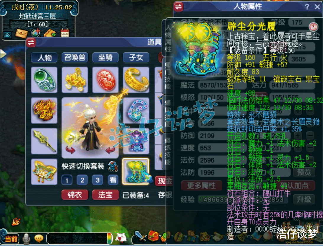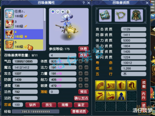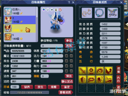 Hello大家好,我是浩仔!关注浩仔,每天给你带来最新梦幻西游游戏资讯!以下点评仅代表个人意见,不代表官方或平台立场。 前两天给大家展示了一个175级不磨凌波城,堪称不磨物理系的天花板,不磨装备搭配特技,PK与任务一套装备可以通用,非常令人眼馋!看完了不磨物理系,本篇文章浩仔继续给大家展示一个不磨法系!其实与物理系相比,法系对装备的要求更低一点,PK上带一个琴音三叠特技就够了,任务上可能都不需要特技!本篇要展示的这个法系,他的硬件主要是针对刷任务,一起来欣赏一下吧! 175级龙宫打符没带神器的面板属性,全身永不磨损装备,2596的法伤653的速度,刷任务就是一个字“爽”! 160级永不磨损长眉灵猴套男头,打了12锻月亮石! 160级永不磨损长眉灵猴套项链,熔炼后初灵256,打了14锻舍利子,这条项链打PK也够用了! 160级永不磨损长眉灵猴套铠甲,熔炼后敏魔双加62,打了14锻舍利子! 160级永不磨损长眉灵猴套鞋子,附加抵抗封印命中率+1.35%,打了11锻黑宝石! 嘉年华活动获取的永不磨损腰带,加83法伤,属性还是非常不错的! 160级永不磨损武器,体魔双加69,打了13锻太阳石! 戒指下排三法暴,耳饰下排双法暴一法伤,佩饰下排三防御,手镯下排双防御一气血,特效都是6级健步如飞,就是为任务而准备的! 7技能敏须弥雷龙,造型帅气,速度资质再养一养就完美了! 8技能血攻善恶魔化童子,这只宝宝就偏向于打PK了,比较高端! 7技能净台配速血宠童子,其他宝宝没有展示,应该还有全力攻宠! 好了,这个175级龙宫展示完毕,先不说PK上怎么样,他的属性应该碾压大部分任务法系!接近2600的法伤,刷各种任务都完全足够了,而且他的灵饰带了5法暴,法暴几率能达到15%以上,几乎是逢秒必暴!有一个这种号刷任务,就是一个字“爽”!各位喜欢吗? 叶子猪梦幻西游玩家群:1群 325703083 (2000人),2群: 330102322 (千人);3群: 424986787 (游戏疑难解答);4群: 330518295 (商人物价);5群: 1063086037 (疑难解答);6群: 1045753197 (春心萌动);7群: 787195090 (活跃互动);8群: 720665628 (全民PK) [编辑:月光下完美]