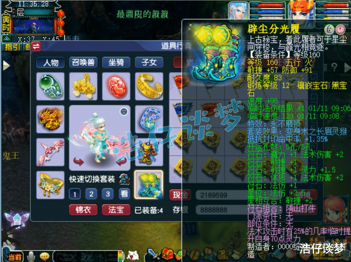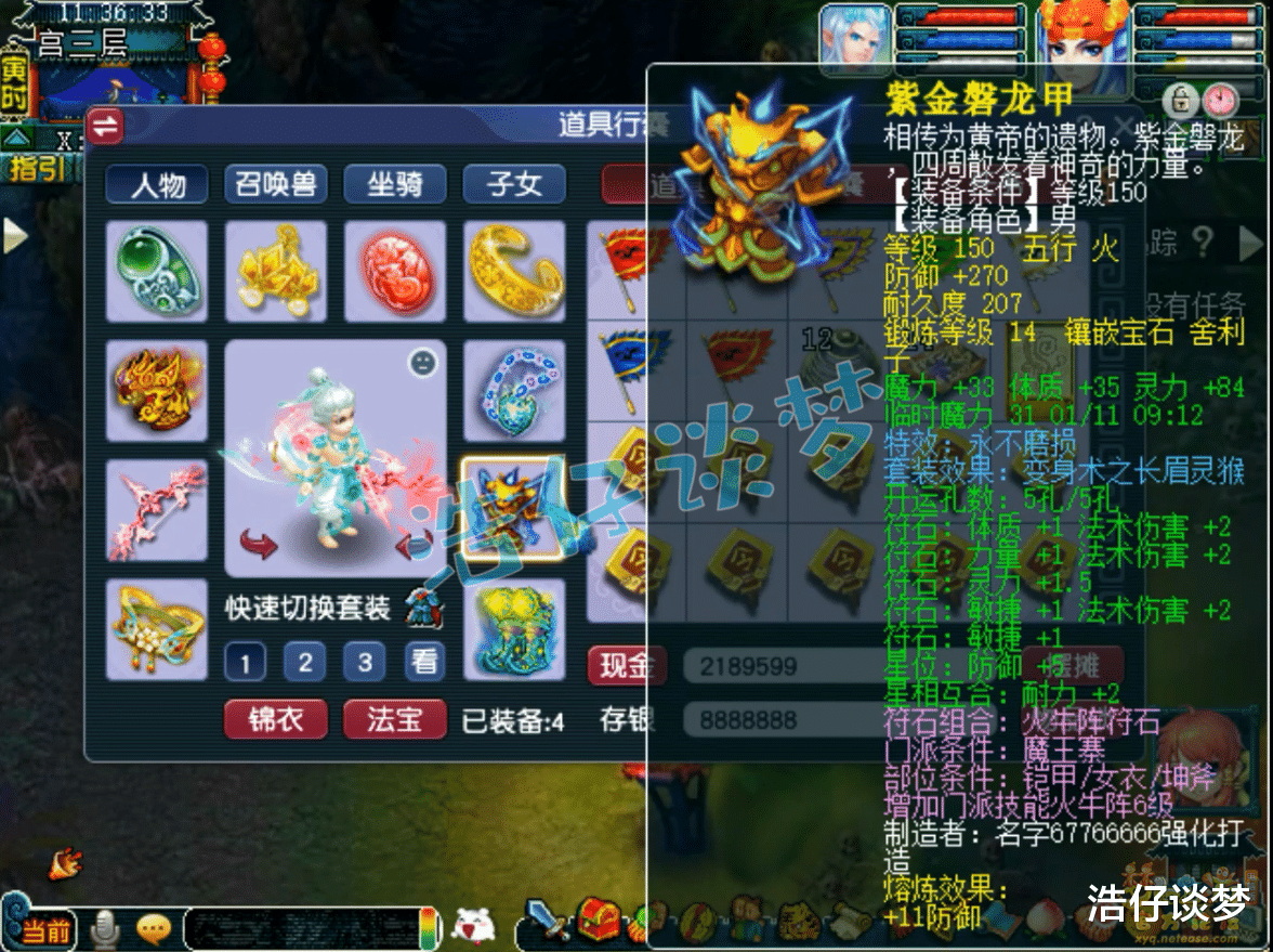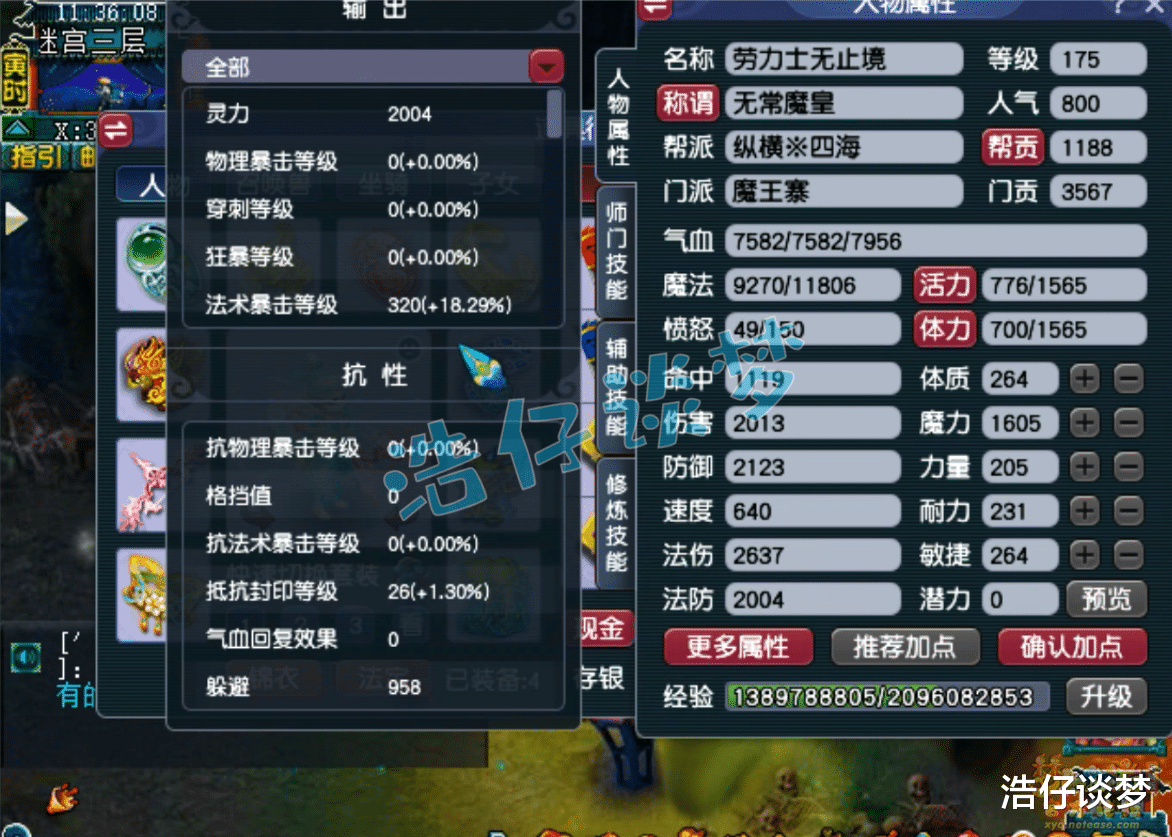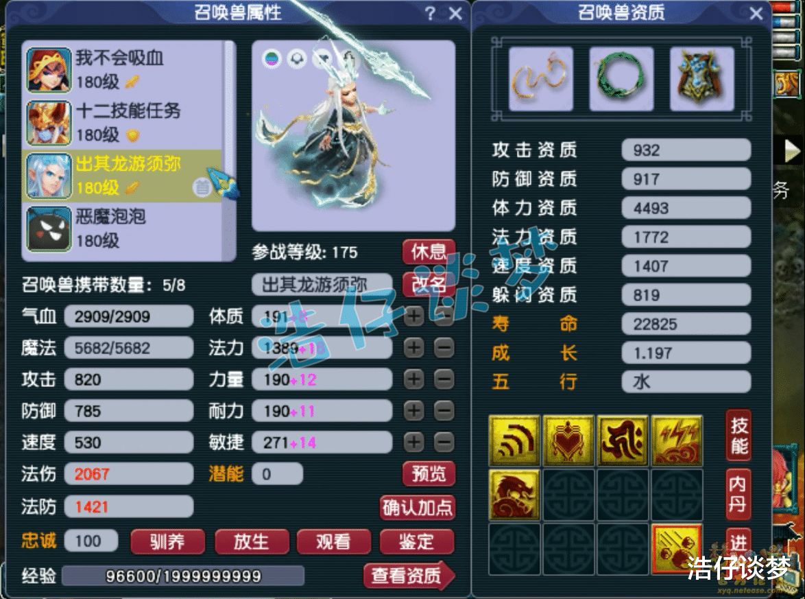 本篇文章浩仔要给大家带来的,是一个175级的魔王寨!他的搭配偏向于刷任务,全身6件永不磨损装备,宝石最高打了14锻,在拥有2637法伤的同时,还有18.29%的法术暴击几率,刷任务就是俩字“暴力”!接下来,就跟我一起来欣赏一下这个炸裂的魔王寨吧! 175级魔王寨打符没带神器的面板属性,带了任务获取的法伤腰带,在拥有2637法伤的同时,还有18.29%法暴,几乎是逢秒必暴! 160级永不磨损长眉灵猴套男头,打了13锻月亮石! 160级永不磨损长眉灵猴套项链,熔炼后初灵256,打了14锻舍利子! 150级永不磨损长眉灵猴套铠甲,魔体双加68,打了14锻舍利子! 160级永不磨损长眉灵猴套鞋子,附加抵抗封印命中率+1.35%,打了12锻黑宝石! 160级永不磨损长眉灵猴套腰带,打了12锻黑宝石! 160级永不磨损武器,熔炼后体魔双加59,打了15锻太阳石! 戒指下排三法暴,耳饰下排双法暴一法伤,佩饰下排三防御,手镯下排双防御一气血,特效都是6级健步如飞,从特效来看也是专门用来刷任务的! 10技能高连接近全力的金铙僧,1.3满成长,攻资也很高,刷任务非常暴力! 12技能高连血攻童子,这只是用来刷难度任务的! 6技能出其不意风起龙游须弥雷龙,很暴力的三特殊法宠,套装带的是高法暴!好了,这个175级魔王寨展示完毕,从他的装备和宝宝来看,就是专门为刷任务而打造的!6件不磨装备加身,几乎不需要考虑装备耐久的问题,带着10锻的前排灵饰,大幅提升人物输出!我相信,这应该是所有任务玩家心目中最理想的法系吧!各位觉得这个号怎么样呢?发表一下你的看法吧! 叶子猪梦幻西游玩家群:1群 325703083 (2000人),2群: 330102322 (千人);3群: 424986787 (游戏疑难解答);4群: 330518295 (商人物价);5群: 1063086037 (疑难解答);6群: 1045753197 (春心萌动);7群: 787195090 (活跃互动);8群: 720665628 (全民PK)