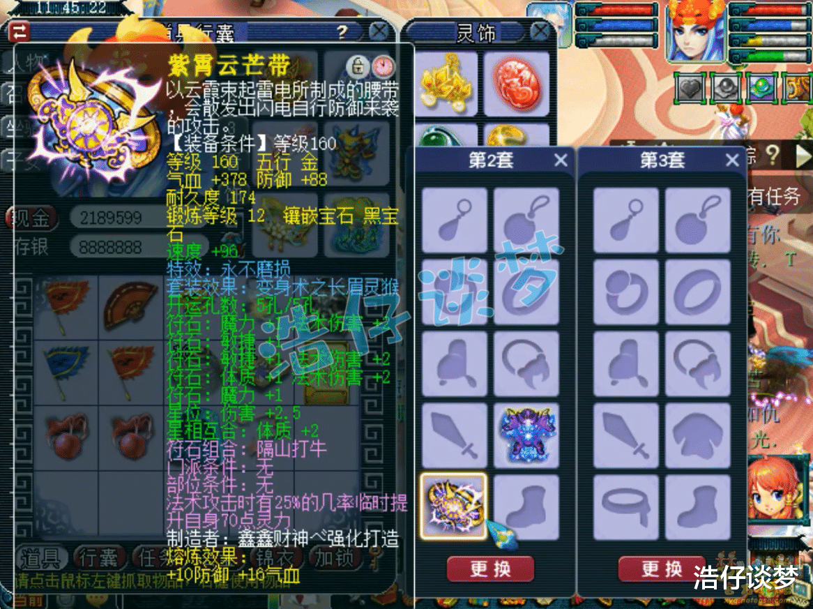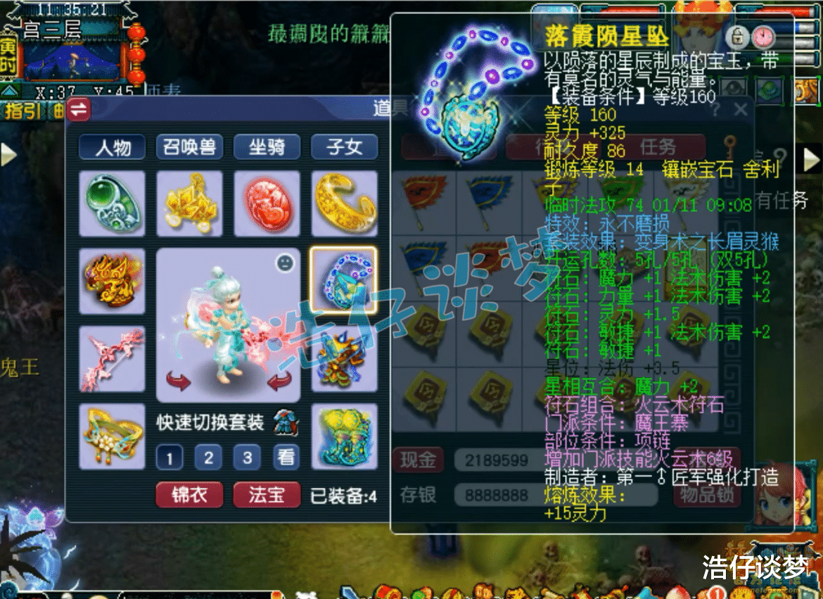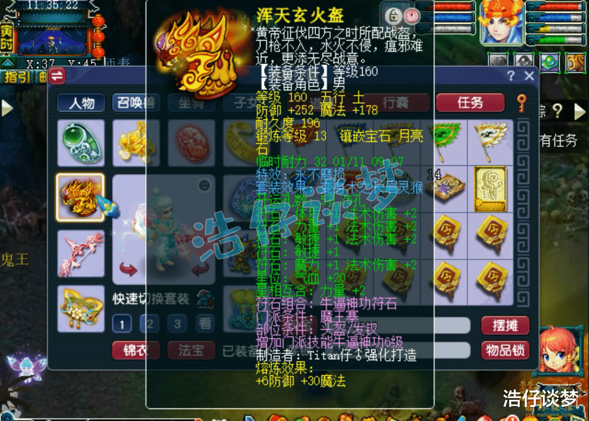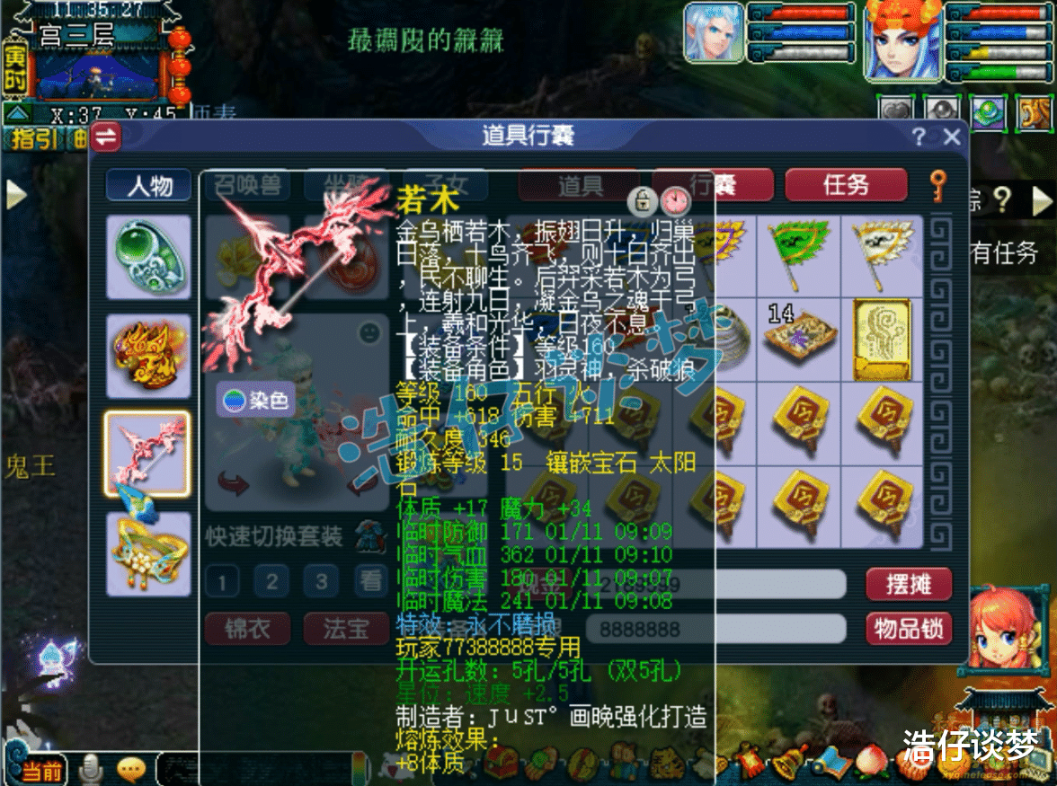 本篇文章浩仔要给大家带来的,是一个175级的魔王寨!他的搭配偏向于刷任务,全身6件永不磨损装备,宝石最高打了14锻,在拥有2637法伤的同时,还有18.29%的法术暴击几率,刷任务就是俩字“暴力”!接下来,就跟我一起来欣赏一下这个炸裂的魔王寨吧! 175级魔王寨打符没带神器的面板属性,带了任务获取的法伤腰带,在拥有2637法伤的同时,还有18.29%法暴,几乎是逢秒必暴! 160级永不磨损长眉灵猴套男头,打了13锻月亮石! 160级永不磨损长眉灵猴套项链,熔炼后初灵256,打了14锻舍利子! 150级永不磨损长眉灵猴套铠甲,魔体双加68,打了14锻舍利子! 160级永不磨损长眉灵猴套鞋子,附加抵抗封印命中率+1.35%,打了12锻黑宝石! 160级永不磨损长眉灵猴套腰带,打了12锻黑宝石! 160级永不磨损武器,熔炼后体魔双加59,打了15锻太阳石! 戒指下排三法暴,耳饰下排双法暴一法伤,佩饰下排三防御,手镯下排双防御一气血,特效都是6级健步如飞,从特效来看也是专门用来刷任务的! 10技能高连接近全力的金铙僧,1.3满成长,攻资也很高,刷任务非常暴力! 12技能高连血攻童子,这只是用来刷难度任务的! 6技能出其不意风起龙游须弥雷龙,很暴力的三特殊法宠,套装带的是高法暴!好了,这个175级魔王寨展示完毕,从他的装备和宝宝来看,就是专门为刷任务而打造的!6件不磨装备加身,几乎不需要考虑装备耐久的问题,带着10锻的前排灵饰,大幅提升人物输出!我相信,这应该是所有任务玩家心目中最理想的法系吧!各位觉得这个号怎么样呢?发表一下你的看法吧! 叶子猪梦幻西游玩家群:1群 325703083 (2000人),2群: 330102322 (千人);3群: 424986787 (游戏疑难解答);4群: 330518295 (商人物价);5群: 1063086037 (疑难解答);6群: 1045753197 (春心萌动);7群: 787195090 (活跃互动);8群: 720665628 (全民PK)