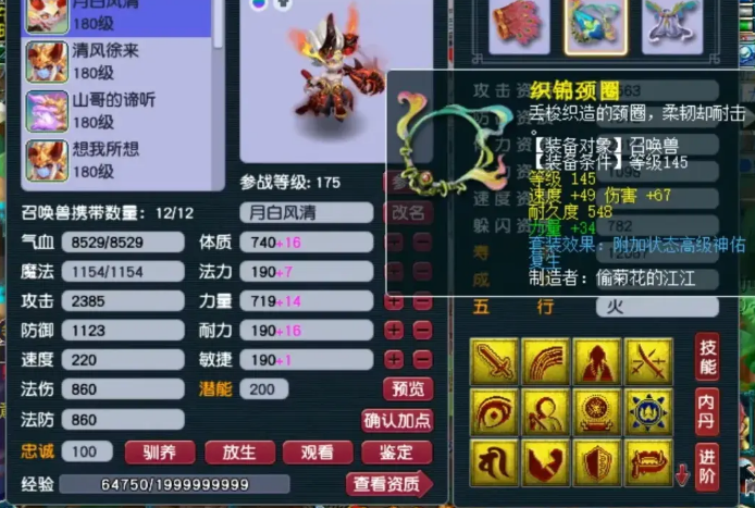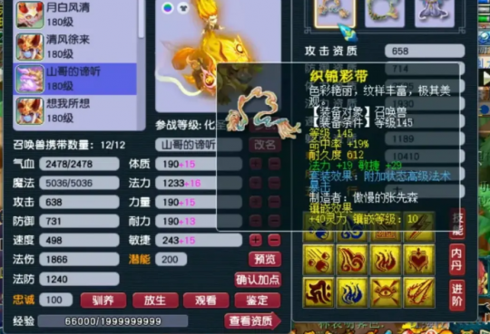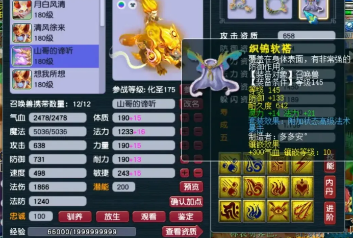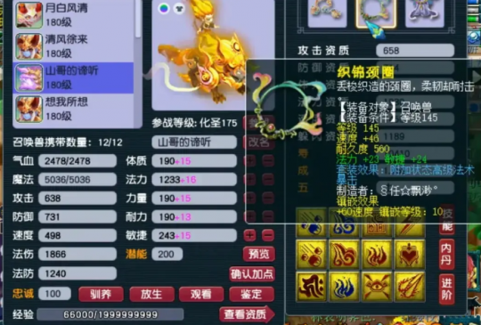 宝宝装备虽然没有人物装备那样,一件装备几百万,但宝宝装备是服战不可或缺的,伤害属性越高对服战比赛越有利,所以服战土豪都追求更高伤害的宝宝装备。目前综合伤害最高的就是101,也是众多服战老板追求的目标。正常情况下,豪门配置的伤害有85就不错了,而下面山哥一只召唤兽却同时携带了两件101伤的宠装,服战冠军都叫他一声哥。下面给大家展示这位土豪配置的召唤兽。 第一只宝宝是天花板净台善恶神马童子,低级冥思加高慧根实现半永动机,火属性吸收还能顺便防地狱烈火的瞬法和谛听。 尤其是宝宝装备,项圈与铠甲均配置了总伤101的装备,而且铠甲达到了137的防御,一件装备就可以买5个化圣号,这个就真的无人能超越了。一般人用85伤的,你在500人的梦幻西游群里,大家得管你叫声哥。而用95伤,那就是基本上服豪门的极限了,而且也没有普及到95伤,大概服战豪门普及到92左右。所以说101伤的宝宝装备那就不用说了,就是出了以后在藏宝阁你也不用点收藏,你也知道你自己跟它没啥关系。 接着展示的是12技能四特殊的童子,携带死亡、法防、净台妙谛以及浮云神马。宝宝装备铠甲的话是138防御,耐敏双加49,点化了高级幸运套装,打满10段宝石。项圈的速度47,附加耐敏双加43。配置的这件铠甲宝宝装备还是很强。 法宠方面,配置了12技能关照万象谛听。这简直就是火车和谐号,一个火车头带着8个车厢,速度直接来到了350迈。这只宝宝最可惜的地方就是普通人即便刷到珍宝阁也很难看到他。 首先你得坚持到十回合,一个8轮车,4个大法三个小法,加上古灵符上,古灵符等于小法,宝宝装备分别是法敏48、47。但是铠甲的灵法双加有点拉胯,灵力现在只有在须弥的情况下,法力是1.1,带灵法这个装备就没看懂了,要是三件装备都选择敏捷就好了,因为如果在绝对需要敏捷的话,甚至要加敏的情况下,敏法的装备一定收益比灵法这个高。选择灵法可能是为了比攻宠快就行了。 不说其它的,就凭借以上两只宝宝配置的装备,足以说明这位土豪不简单,可谓是豪门中的豪门,王者中的王者。 叶子猪梦幻西游玩家群:1群 325703083 (2000人),2群: 330102322 (千人);3群: 424986787 (游戏疑难解答);4群: 330518295 (商人物价);5群: 1063086037 (疑难解答);6群: 1045753197 (春心萌动);7群: 787195090 (活跃互动);8群: 720665628 (全民PK)