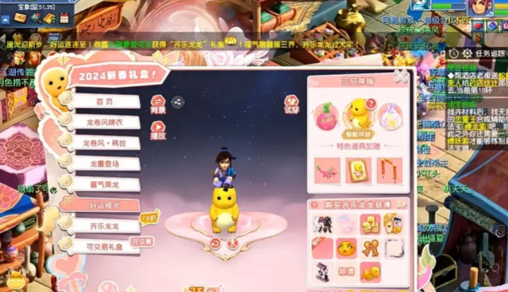 2023年最火的动画片非奶龙与小七莫属,而梦幻西游开年新春祥瑞就是奶龙,花1100块即可购买新春祥瑞三件套,包括奶龙、火龙果以及龙须糖。今年的新春祥瑞的确很给力,不仅造型好看,而且奶龙拥有超能力,可以帮忙主人寻路,找到对应的npc,更有传说奶龙可以锁定地煞星以及变异妖怪的坐标,真的是这样的吗?一起来看看吧。 本来是打算买一整套新春祥瑞和锦衣的,但这个男款的新春锦衣真的不怎么样,穿上去看起来像一个瘦猴,而且这人物的身材比例都失调了,就像那种小理发店的托尼老师穿着西服给你剪头发的感觉。所以这次就只买祥瑞。 这次的三个祥瑞为奶龙、火龙果、龙须糖,而只有11000玉这个礼包才有这个龙须糖的祥瑞。 购买完之后,大家看一下实际的骑行效果,其实还是有一点这个比例失调的问题,你们看这个实际的骑行效果,它的这个尾巴特别短,而且特别小,有种7个小蛤蟆的感觉,反正这次新春祥瑞和锦衣整体的效果差强人意,而这次新春活动消费1000玉还会送翻一番活动。 正好我们实际测试一下,往年的翻一番是用仙玉翻,这次改成梦幻币了,消费1000仙玉可以获得一次翻一翻的次数,第一次翻的话是免费,第二次6万梦幻币,之后每次消耗的梦幻币翻倍,也就是说12万,24万,48万,一共是9张卡片。如果你点出翻倍卡片,下次点出的物品按照翻倍卡片的次数翻倍。由于我现在玩的是周年新区,点卡比例是200万比100块,所以说翻的就比较谨慎,大多数的道具其实不值得一直花梦幻币消耗去翻的。 接下来就是奶龙的这个自动寻路功能的测试,有人说可以锁定地煞星以及变异怪的坐标。 首先奶龙它不是所有的NPC都认识的,你要在当前的频道聊天中喊出奶龙带我去找某某NPC,或者是某某地图的名字,如果你喊出的是地图名字,他直接消耗一张飞行符就飞到那个地图了,如果你喊出的是某某NPC,比如说喊出奶龙带我去找店小二,它会先用飞行符飞到长安,然后再自动巡路找到带小二。 但是这里要注意,奶龙自动寻路会消耗一个叫奶龙飞行符的东西,这个东西是奶龙有一个系统,通过胶烹饪给指定的NPC才会获得,也就是说你想一直使用奶龙这个寻路功能的话,还要一直刷这个任务,还要一直消耗烹饪。 另外,这个奶龙的寻路功能它有很多的NPC不认识,所以跑镖的时候它也是用不了的,你说他不认识也就算了,它还会给你发一条语音。 有玩家说,奶龙可以帮忙锁定地煞星的坐标,以后就不用抢地煞星了,根据坐标提示去挑战即可,这是真的吗? 经过询问梦幻西游工作人员得知,坐标锁定只是NPC的台词,坐标是假的。 叶子猪梦幻西游玩家群:1群 325703083 (2000人),2群: 330102322 (千人);3群: 424986787 (游戏疑难解答);4群: 330518295 (商人物价);5群: 1063086037 (疑难解答);6群: 1045753197 (春心萌动);7群: 787195090 (活跃互动);8群: 720665628 (全民PK) [编辑:极光]