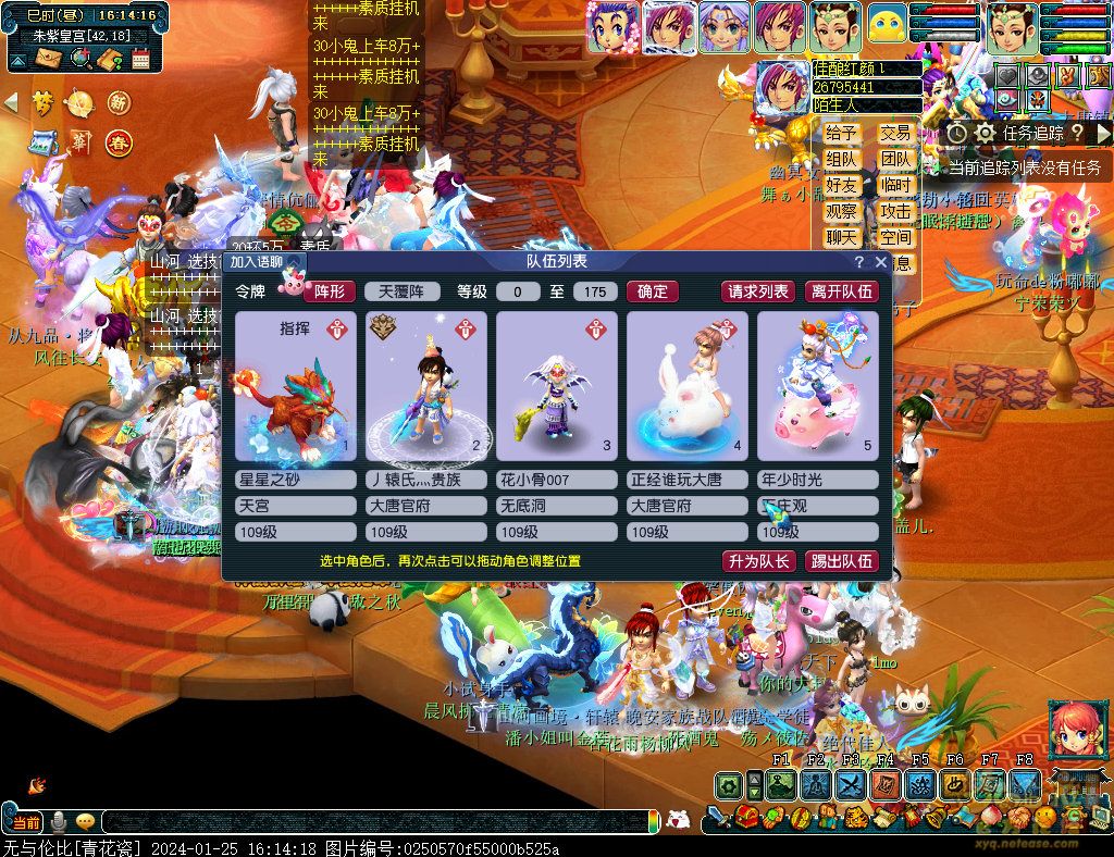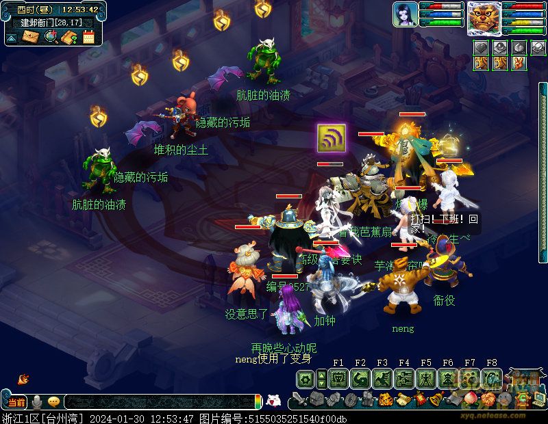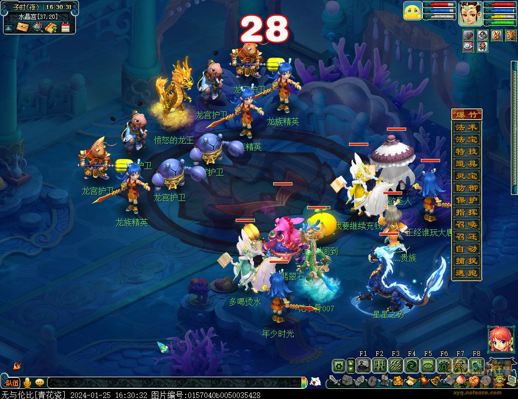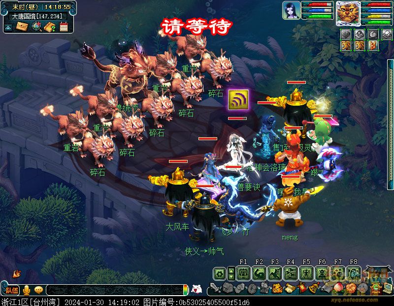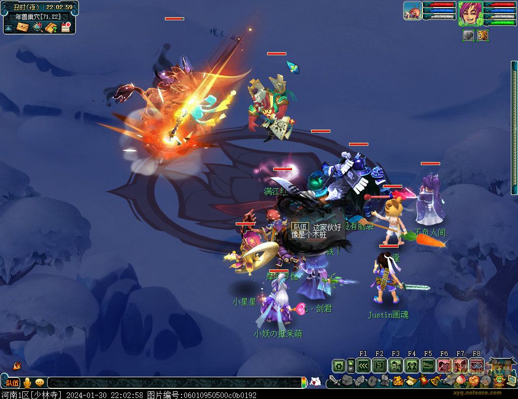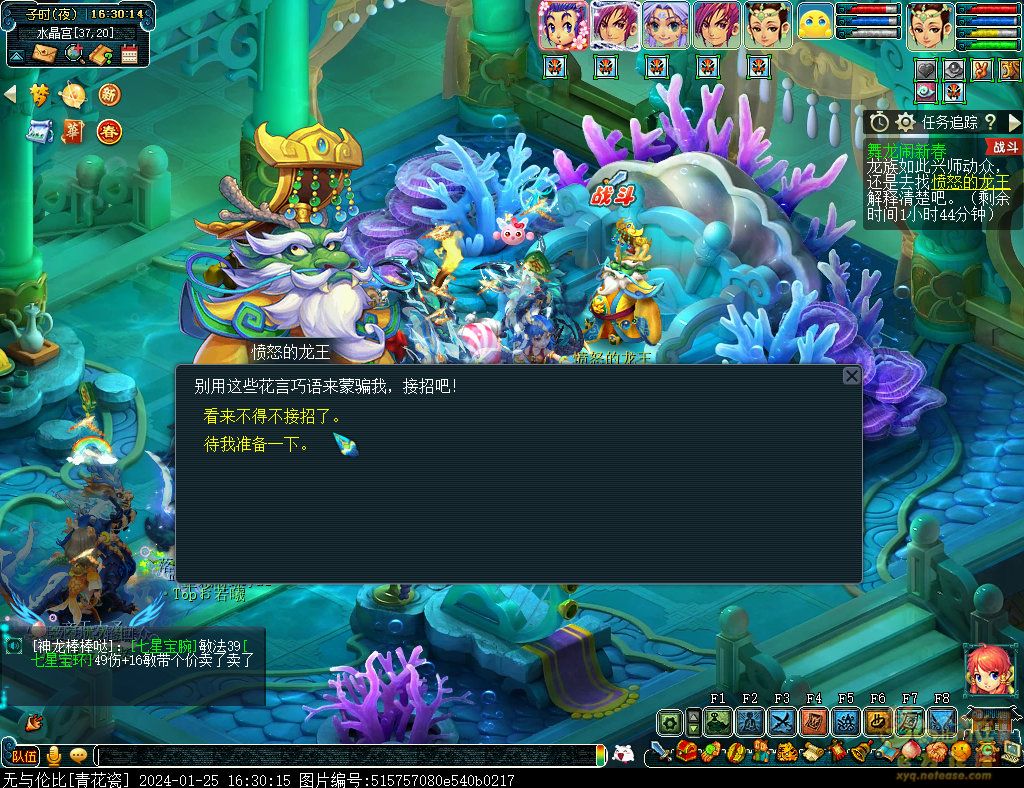 丹凤朝阳歌盛世,神龙赐福贺新春! 一、新春活动简介: 本次新春活动有多种组队任务和单人任务,以及趣味PVP玩法。 组队任务:三界迎新春(第一阶段环任务)、四海闻春风(第二阶段环任务)、舞龙闹新春(小副本)、年煞追讨令(限时挑战)、龙吟镇邪兽(年兽挑战)。 单人任务:龙年新玩具(玩具玩法)、新年小目标(累计奖励)、福地贺新年(挂机玩法)、年宝再团聚(年兽宝宝回归任务)、闲坐话新春(AI互动)、萌宝尘世游(单人世界任务)、年兽玩具库(彩蛋奖励)、春来启神兵(专属装备)、新春小当家(新春烹饪)、神龙迎春来(神兽抽奖)、烟花贺年岁(烟花拜年)、牧场庆团圆(牧场管理)。 趣味PVP:擂台单挑王(单挑模式擂台赛)、菁英挑战赛(剑会天下三界菁英模式)。 活动涵盖范围广,上手难度低,奖励非常丰厚,定能为这个春节增色良多。 二、共度团圆年 三界迎新春(环任务-第一阶段) 【参与条件】≥30级,队伍人数≥3。 【玩法介绍】重复领取式任务。1月30日12点至2月13日8点,玩家可在长安城(235,114)福禄童子处领取任务。前100环为双倍奖励,101至140环为1.4倍奖励,141环后无奖励。队长每次成功带队完成一轮环任务时,均获得一次旋转队长奖励转盘的机会,可获得丰富的物品奖励! 本次轮内环任务支持快速领取,无需返回活动主NPC处领取任务。环任务主要涉及NPC及合成旗点位推荐如下表格所示: 【活动详解】所有战斗均无特殊怪物,每场战斗均可使用爆竹技能,怪物存在对应易伤,使用对应类型的技能进行输出可以打出更高伤害。其中,黄色破盾:物理易伤;蓝色破盾:法术易伤;紫色破盾:固伤易伤,三种易伤状态可以叠加。合理利用怪物易伤,可以打出高额伤害! 战斗类型①:香料店老板、古玩店老板、花店老板、挂毯店老板(花束) 战斗类型②:王夫人、秦夫人、殷夫人、赵姨娘(佛仙跳墙) 战斗类型③:花灯(龙灯) 战斗类型④:烟花(捣乱的年兽) 战斗类型⑤:福运(龙凤呈祥) 战斗类型⑥:衙役(堆积的尘土) 给予烹饪(包子、虎骨酒、女儿红除外):3号烽火台守卫 给予三药(金创药除外):紫阳药师 【活动奖励】以109级为例,完成任务获得的基础奖励如下表格所示。每完成10环后,队长可以获得转盘奖励。转盘物品奖励如下: 此外,在环任务的过程中,还有可能获得全队的春节彩蛋哦~队员可以选择砸开一个金蛋,获得其中丰富奖励。 三、舞龙闹新春 【领取要求】等级≥50级,队伍人数=5 【活动介绍】2024年1月30日12点至2月27日12点,玩家(≥50级,5人组队)可在长安城(235,114)福禄童子处开启任务。 【任务详解】如下 测试阵容如上。 组队找福禄童子开启小副本任务,进入虚拟场景后点击大赛使者,经过一段对话后,点击建邺舞龙队,触发本任务的第一场战斗。 主怪固定使用二龙戏珠,雷龙固定使用水漫金山,虬龙固定使用天罗地网,左侧龙龟固定使用龙腾,右侧龙龟和前排中间的小龙女固定使用龙卷雨击,中间左右的小龙女固定使用水攻,最左最右的小龙女固定平砍,伤害均不高。 总体难度不大,硬件不强的需要注意回复,建议优先击杀最左最右的小龙女,只有这两个是物理攻击,会造成耐久损失。 战斗结束后,点击大赛使者进行变身,需要玩家五人均处于变身状态才能进行任务。大赛使者提供的变身为:小龙女、龙鲤、蛟龙、虬龙、雷龙。变身完毕后,点击建邺舞龙队,触发本任务的第二场战斗。 龙龟未见行动,左侧蛟龙固定使用龙卷雨击,右侧蛟龙固定使用龙腾,前排虬龙和雷龙开始蓄力三回合(可被打断),蓄力完成后使用百爪狂杀,伤害均不高。总体难度不大,建议优先打断前排蓄力,减少耐久损耗,硬件不强的需要注意回复。 战斗结束后,点击大赛使者,经过一段对话后传送至东海湾,点击愤怒的龙族护卫,触发本任务的第三场战斗。 蛟龙固定使用水漫金山,小龙女随机使用平砍或水攻,伤害不高。 总体难度不大,硬件不强的需要注意回复或者携带水属性吸收类装备或法宝。 战斗结束后传送至水晶宫,点击愤怒的龙王,触发本任务的第四场战斗。 主怪固定使用龙卷雨击,龟丞相固定使用水漫金山,虾兵固定使用平砍,小龙女固定使用水攻,蟹将随机使用平砍或破血狂攻,伤害均不高。 总体难度不大,硬件不强的建议封印龟丞相,重点击杀蟹将。 战斗结束后传送至天宫,点击守门天将,经过一段对话后传送至长安城,点击下凡的神仙,需要完成三个小任务才能继续进行。 穷汉任务:点击拾取掉落的年货。 张老财任务:答题。 孟大娘任务:临摹。 战斗结束后点击下凡的神仙复命,传送至水晶宫,点击愤怒的龙王,经过过场动画后传送至长安城,点击大赛使者,触发本任务的BOSS战。 战斗固定持续10回合,主怪固定使用龙卷雨击,被击杀后会出现两颗宝珠;龙龟固定使用水漫金山被击杀后出现一颗蓝色宝珠,击杀蓝色宝珠后会对全部宝珠造成伤害;虬龙会进行三回合蓄力,蓄力完成后使用百爪狂杀(可被打断);雷龙女儿村,般若天女固定平砍,被击杀后会出现一颗宝珠;所有宝珠不行动,前排宝珠每回合会补全,每击杀一颗宝珠得一分,击杀一颗大宝珠得五分,且场上会出现紫色宝珠,紫色宝珠被击杀后会随机炸掉一颗宝珠。 建议大家携带须弥开场,封系封印雷龙,防止其干扰行动,输出系优先击杀虬龙,以打断蓄力,然后可以击杀主怪、龙龟、般若天女,召唤更多的龙珠。总体难度不大,硬件不强的需要注意回复。 战斗结束后,任务完成。 四、年