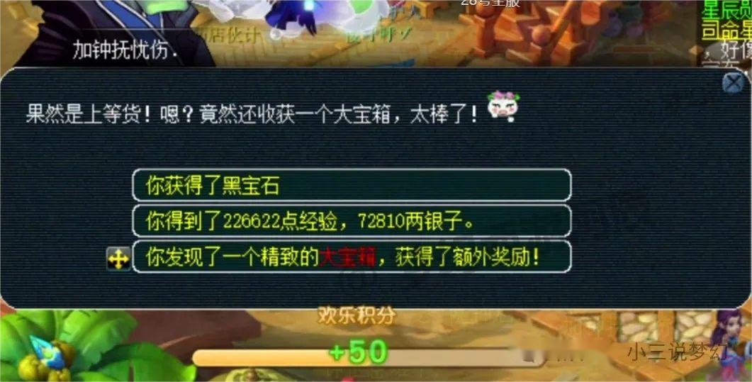游戏的意义就在于它能够给人带来快乐,大家好,我是小三,每天给大家分享游戏中的八卦趣事。 一、幼儿园变异刷脸 这位玩家运气也太好了,别人挖宝放的幼儿园,直接一只变异刷在了脸上,将这只变异的黑熊精抓过来,怎么着也能够卖到四五百万的梦幻币了。顶上一整天的日常玩法收益了。 二、整点怪必给2级宝石,知了王换皮回归了 嘉年华的活动玩法已经在部分服务器内进行测试了,这次的嘉年华整点怪物完成战斗以后是必给二级宝石的,按照现在黑宝石的价格来计算,上面这位玩家差不多获得了36万的收益,再加上boss给的奖励,总共的收益能够达到40多万。这么来看今年嘉年华的整点怪物的奖励还是比较不错的,有点像当年的知了王的感觉。 三、赐福技能洗好了,要不要把出其力劈改成出其壁垒? 这位玩家赐福出了4个不错的超级技能,不过宝宝本身没有带壁垒而是带的力劈。由于目前还没有超级力劈,所以想要达成4赐福只能继续打书了,如果一本壁垒可以打掉再生的话,这只宝宝就非常给力了。 四、嘉年华环怪血量雄厚,物理系舒服了 有测试服的玩家体验了2024嘉年华的环任务,感觉怪物血量比较多,而且物理系在环任务中有额外的加成,打出的数据都非常亮眼。由近几次的节日活动都可以看出,物理系在日常活动的优势越来越大,这也能一定程度缓解物理系玩家混队上车难的问题。 叶子猪梦幻西游玩家群:1群 325703083 (2000人),2群: 330102322 (千人);3群: 424986787 (游戏疑难解答);4群: 330518295 (商人物价);5群: 1063086037 (疑难解答);6群: 1045753197 (春心萌动);7群: 787195090 (活跃互动);8群: 720665628 (全民PK)