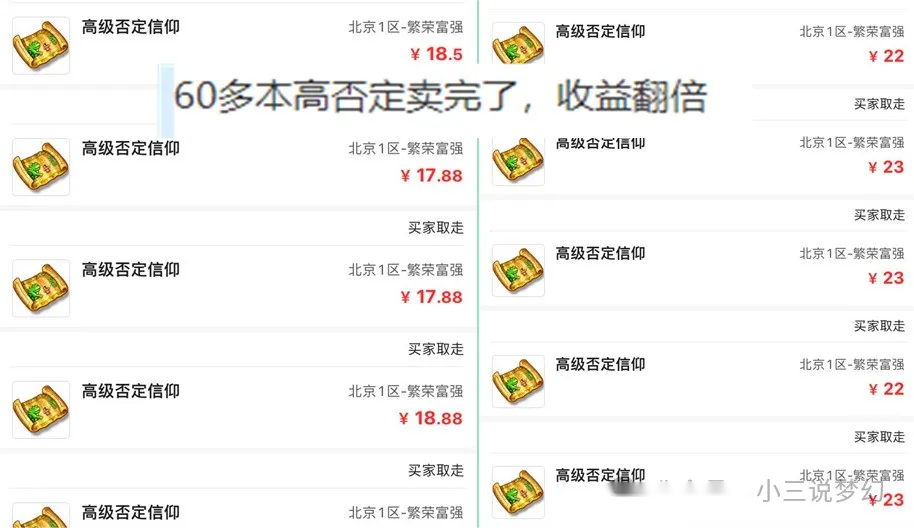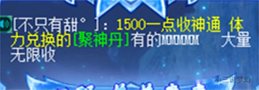 游戏的意义就在于它能够给人带来快乐,大家好,我是小三,每天给大家分享游戏中的八卦趣事。 一、合出来的谛听带着双核心 谛听炼妖直接带眼睛和须弥应该是最舒服的了吧,而且这只谛听还直接带了4个主动法术,满级也能直接用一用。不过这样10技能的谛听胚子自然是要把轮子上满的,每多一个轮子,输出能力就提升一个台阶。 二、1500一点神通点,大家的体力以后不要再卖了 以前的时候有很多玩家在没有学习辅助技能的情况下会选择去书店内打工,也就是将自己的体力变成梦幻币或者准备金,但是新资料片上线以后大家就没有必要这么做了,因为新资料片上线以后体力有了更好的处理方式,就比如体力可以去换聚神丹,现在在梦幻中有人收购聚神丹了,没点神通的价格是1500两的梦幻币,将体力换成聚神丹的性价比要比去书店打工划算多了。 三、冒充群雄队友上号,大佬的召唤兽被改书 最近,有位玩家上当受骗损失惨重。骗子谎称自己要加入玩家的团队,在进入群组后改名换头像假扮群成员,通过骗取对方扫码上号,之后敲诈号主索要财务,否则将给宝宝改书。请大家一定要注意自己的账号安全,不要将帐号交由陌生人登录。 四、终于卖完了,60本高否定 前一段时间,有很多玩家囤了高级否定信仰又或者是高级合纵的兽诀。随着现在热度减退,高级否定的价格也稳定了下来。相比之前,价格也还是有小幅上涨。这位玩家也一次性将囤的60本高否定都卖完了,小赚了一笔。 叶子猪梦幻西游玩家群:1群 325703083 (2000人),2群: 330102322 (千人);3群: 424986787 (游戏疑难解答);4群: 330518295 (商人物价);5群: 1063086037 (疑难解答);6群: 1045753197 (春心萌动);7群: 787195090 (活跃互动);8群: 720665628 (全民PK)