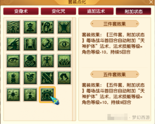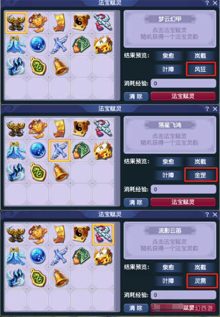 各位少侠,万众期待的四月调整已正式登录开发测试。小美作为“情报先锋官”,将为大家带来了第一手资讯! 今天,让我们抢鲜看看关于“新套装”、“新灵宝”和“法宝赋灵”的相关内容吧! 温馨提示:以下内容为开发测试区内容 最终内容以全服上线为准 【新套装】 四月调整中新增装备套装“天神护体”,“天神护体”可以同时提升使用者的法伤和法防。 四月门派调整中,天宫新增经脉“天劫”,配合“天神护体”套装可以让魔天宫实现第一回合秒6。 【新灵宝】 四月调整中新增“饕餮”系列灵宝:“饕餮巨斧”、“饕餮神像”和“饕餮战车”,具体效果如下: 【法宝赋灵介绍】 “法宝赋灵”是四月调整中新增的玩法,少侠们可前往兜率宫太上老君处体验。 下面,小美为大家简单介绍介绍“法宝赋灵”的相关信息: 1.目前,只有满层的4级法宝才可以进行赋灵。赋灵后该法宝将随机获得灵韵(1级),消耗经验可对灵韵进行升级(法宝界面修炼,无需前往太上老君处),最高6级。 2.法宝灵韵可以重置或清除,少侠们可以通过重置操作获得自己需要的灵韵。另外,重置或清除灵韵后,原有灵韵的等级不会被继承,需要重新消耗经验修炼,大家谨慎操作。 3.少侠们最多可同时佩戴1个赋灵法宝,并且不能同时佩戴赋灵法宝的未赋灵版本。 4.携带已赋灵的法宝进入战斗时,扣除该法宝5点灵气。灵气=0时,法宝灵韵不生效。 注意,赋灵法宝只在每场战斗开始时扣除1次灵气,并不是一些少侠理解的每回合扣除。以蟠龙玉璧为例,完成赋灵后,切入战斗时扣除5点灵气,之后需要触发蟠龙玉璧的格挡伤害效果时才会按常规扣除1点灵气。 【灵韵介绍】 目前,测试区共开放了8种灵韵类型,具体效果如下: 叶障:进入战斗时,获得N%最大气血值的护盾 泉愈:战斗前4回合受到的治疗量提高N% 岚截:战斗前4回合有N%几率使受到的伤害降低50% 风狂:速度增加N 灵雳:法术伤害增加N 金罡:物理伤害力增加N 盾雾:法术防御增加N 土强:防御增加N 另外,根据小美观察,每一个4级满层法宝都有四种不同的灵韵供少侠们选择。 其中,叶障、泉愈和岚截为“常驻”灵韵。除此之外还会根据法宝的用途为我们分配风狂、灵雳、金罡、盾雾、土强的其中一种以供选择,如下图: 以上就是测试区关于“新套装”、“新灵宝”和“法宝赋灵”的前线快报啦,咱评论区不见不散哦~ 叶子猪梦幻西游玩家群:1群 325703083 (2000人),2群: 330102322 (千人);3群: 424986787 (游戏疑难解答);4群: 330518295 (商人物价);5群: 1063086037 (疑难解答);6群: 1045753197 (春心萌动);7群: 787195090 (活跃互动);8群: 720665628 (全民PK)