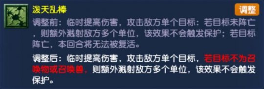 激动的心,颤抖的手,大家期待的2025年10月调整已正式登录开发测试。 前线小钻风小美限时回归,为各位带来第一手情报!今天,咱们来介绍花果山的调整内容。 温馨提示:花果山的三大流派都有着非常多的调整内容,各位一定要认真阅读哦。 【本次内容为开发测试区内容 不代表最终正式服上线内容】 【神器技能调整】 【“齐天武圣”流派调整】 师门法术“泼天乱棒”效果调整 经脉技能“棒打雄风”效果调整 【“斗战真神”流派调整】 新增流派被动“把戏” 删除师门法术“无所遁形”、“铜头铁臂”和“晦明承风” 师门法术“泼天乱棒”效果调整 新增师门法术“棒打雄风” 新增师门法术“猴子猴孙” 新增师门法术“叶底偷桃” 经脉技能“变化”调整 经脉技能“棒打雄风”重做,更名为“熟稔” 经脉技能“压邪”调整 经脉技能“圈养”重做,更名为“力压” 经脉大招“身外化身”调整 【“通天行者”流派重做】 接下来是广大魔花果玩家最关心的问题,花果山法系流派“通天行者”在本次调整中获得了全方位重做。 新增流派被动“心窍” 删除师门法术“云暗天昏” 师门法术“捆打诸神”效果调整 新增师门法术“猴子猴孙” 下面是“通天行者”流派的经脉全展示: 第一排经脉技能依次为“精熟”、“闹海”和“后手” 第二排经脉技能依次为“斗志”、“忘形”和“顽性” 第三排经脉技能依次为“金睛”、“逞胜”和“妙诀” 第四排经脉技能依次为“斗战”、“添威”和“纵情” 第五排经脉技能依次为“灵根”、“大圣”和“灵通” 第六排经脉技能依次为“驾临”、“融会”和“勾销” 经脉大招“纵游天地” 好啦,以上就是十月调整中关于花果山的内容。 叶子猪梦幻西游玩家群:1群 325703083 (2000人),2群: 330102322 (千人);3群: 424986787 (游戏疑难解答);4群: 330518295 (商人物价);5群: 1063086037 (疑难解答);6群: 1045753197 (春心萌动);7群: 787195090 (活跃互动);8群: 720665628 (全民PK)