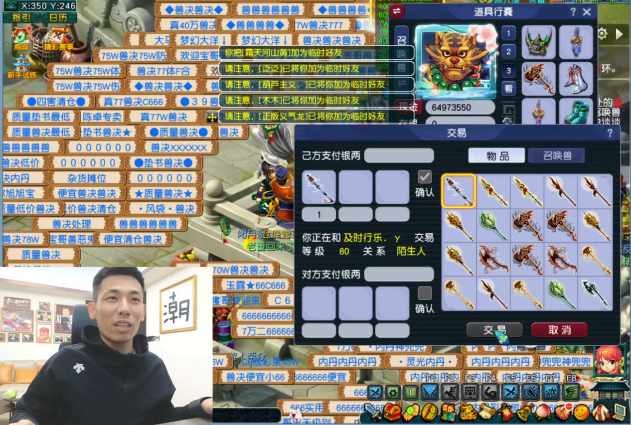 昨晚开播后,旭旭宝宝首先回应了近期《梦幻西游》中【龙拳】被勾魂事件以及【齐天大圣】服比武的相关节奏。他表示,目前会兼顾这两个区继续游玩,并承诺不再转战新区,即使有商单合作也不会接受。对于比武队伍,宝哥表示管家有错就要改,不过所有老板都是全力争冠的,自己也将持续更新装备,绝不拖后腿。那么,宝哥昨晚具体有哪些更新动向呢?一起来回顾一下。 一、旭旭宝宝开出4条小白龙 由于狮驼岭极度依赖“变身”套装,宝哥刚开直播,就鉴定了大量60级未鉴定点化装备。运气极佳的他,在第一车中就成功点化出60级变身腰带。不过,在后续鉴定中他未能如愿获得其他位置的变身套装,属实有点尴尬。 鉴定完套装装备后,宝哥又准备了一整车神兜兜。在大斌子的助阵下,宝哥共开出4条超级小白龙,运气非常不错。要知道,扣除神兜兜成本后,宝哥这波不仅赚得盆满钵满,还可将多余的小白龙赠予队友爆总,共享成果。 随后,宝哥又为好友毕总【再续情缘】的角色鉴定130级武器,或许是开神兽时耗尽了运气,这次鉴定结果大多为420国标属性。值得一提的是,宝哥虽然运气不佳,但心态非常好,鉴定结束后就将这些武器全部送给了区内水友! 二、风少开190万抢购首发超否定兽诀 昨晚,【秦淮风光】服务器惊现本次道人玩法中爆出的首本《超级否定》兽诀!消息一出,立刻引来多位服战神豪争相报价。 尽管各位老板的出价均已远高于市场行情,但号主态度坚决,咬定250W不松口。然而不久后,号主还是选择回归现实,最终接受了风少最具诚意的190W报价,完成交易。 超级否定兽诀的价值涨幅如此惊人,小生在此建议手头有零钱的小伙伴不妨也抢购些魔石试试运气,说不定下一个圆梦的幸运儿就是你! 三、极品物理奇袭玉魄诞生 最近,一名少侠在完成魂铸任务后,拿到一枚极品阳玉。这枚宝玉不仅拥有“双伤害一物暴”的炸裂属性,更额外附带了2.3%的奇袭法术几率。对物理系大佬来说,堆高奇袭法术,就意味着在一回合中出手两次的几率大增,足以在战场上带来巨大的面伤压制力。 此类宝玉在市场上相当抢手,各位预估这枚玉魄的成交价大概是多少呢? 四、少侠当盲僧血亏7.7亿梦幻币 云游道人回归之际,一位少侠凭借“风驰电击”般的手速,成功抢购了30个感应魔石。正当他盘算着转手卖出、小赚一笔之时,意外发生了。在清货过程中,他误将感应魔石标成了飞行符的价格,仅以333两的售价被人瞬间捡漏。 若按成本价1100万梦幻币计算,这位少侠一波操作血亏约7.7亿。只能说,有这样的好事,下次记得叫上小生,小生保证如数归还! 今日的新鲜事到此结束,感谢各位收看。 叶子猪梦幻西游玩家群:1群 325703083 (2000人),2群: 330102322 (千人);3群: 424986787 (游戏疑难解答);4群: 330518295 (商人物价);5群: 1063086037 (疑难解答);6群: 1045753197 (春心萌动);7群: 787195090 (活跃互动);8群: 720665628 (全民PK)