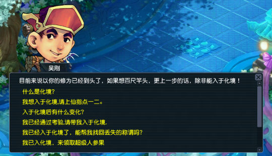 一、角色飞升 ①、参与条件 人物等级≥135级,至少6个门派技能≥130级,服务器开启≥109天 ②、飞升任务 领取地点:月宫(9,34) 任务NPC:吴刚 领取要求:等级≥135级,任意6项师门技能≥130级,服务器开启≥109天 ③、任务简介 百尺竿头,当须更进一步!大侠三界行游,潜心修行,如今虽是小有所成,却与称雄三界相去远矣。若想继续提升修为,便只有脱胎换骨,入于化境,方可有大成之望。然而,欲入化境,必先明道,只有融会十二门派妙法,集齐神器,闯过五行阵法,方可打破玄关,登入化境。各位大侠,不知你们可否准备停当,接受挑战! 任务可能涉及的NPC:吴刚、法明长老、阎罗王、王母娘娘、太上老君、玉皇大帝、东海龙王、李靖、镇元大仙、观音、李世民、程咬金、空度禅师、孙婆婆、菩提祖师、地藏王、大大王、牛魔王、春十三娘 ④、飞升效果 1、角色等级:飞升后角色等级降低15级,等级允许达到的上限提高到155级(需开服天数>130天);如果飞升前等级是145级,则降低16级,并返还144级升至145级的经验。 2、经验值:飞升时,如果角色总经验大于15亿,所超出部分经验将在飞升后减少1/3,但至多扣除当前经验到0。 3、角色属性:等级降低后会减少相应属性点数,“后天”所加最高属性减少90点,其他属性各减少15点,额外获得10点潜力;如果飞升前等级是145级,则“后天”所加最高属性减少96点,其他属性各减少16点,额外获得10点潜力。 4、技能等级:飞升后门派技能允许达到的上限提高到160级,辅助技能不受角色飞升的影响。 5、召唤兽:召唤兽允许达到的等级上限提高到160级。玩家选择飞升时,如果所携带的召唤兽等级>玩家等级+10,则相应的召唤兽等级将被降低到玩家等级+10,并根据所降等级给予召唤兽相应经验(例如玩家等级由140降低为125,140级召唤兽将降为135级,并获得135升级到140级的经验),同时减少相应属性点数(“后天”所加最高属性减少点数为“所降等级×6”,其它属性减少点数等于所降等级)。 6、人物修炼:玩家可根据自身需求选择是否降低修炼等级,其中“猎术修炼”不受角色飞升影响,其它修炼项目选择降低等级后,将产生以下影响: 20级修炼降低到15级,修炼允许达到的上限提高到25级 19级修炼降低到15级,修炼允许达到的上限提高到24级 18级修炼降低到14级,修炼允许达到的上限提高到24级 17级修炼降低到14级,修炼允许达到的上限提高到23级 16级修炼降低到13级,修炼允许达到的上限提高到23级 15级修炼降低到13级,修炼允许达到的上限提高到22级 14级修炼降低到12级,修炼允许达到的上限提高到22级 13级修炼降低到12级,修炼允许达到的上限提高到21级 12级及以下的修炼在角色飞升后不会降低 角色飞升后,如果修炼上限未到25,且“修炼上限-修炼等级”<2,可以找帮派修炼指导人申请,通过降低1级修炼等级的方式,将增加该项修炼上限提高1级。 7、门派法术:每个门派的玩家在角色飞升后,可以学到两项新的门派法术。