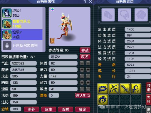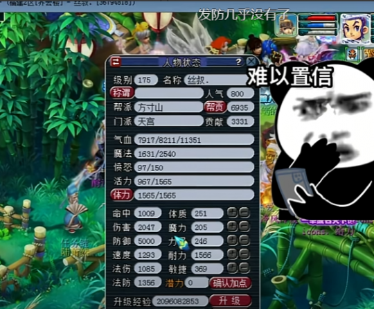 火煌带你看每天的梦幻资讯~ TOP1:谛听卡片? 化圣号去鬼市烧双,目的当然是抓谛听。通常都是银华镜和鬼市,这2个场景轮换着来,能不能抓到稀有宠物全看运气。不过,这遇见谛听精灵,还真是第一次见。包括持国精灵、广目精灵这些召唤兽,确实非常少见。不过,谛听卡片也确实没见过,难不成技能是“观照万象”?这要是角色用这个变身卡,那最后释放一个回门派的技能,5V5的对战,直接减员?想想都离谱。 TOP2:10多年的老号还有只好宝宝 意外找回一个自己多年前的老账号,登录进去一看竟然还有只5技能的律法女娲。这放在10多年前可是不多见的,价格自然不会便宜。1406攻击资质、1.221成长,放在以前价格不错,放现在也就是几百万游戏币,买这种还不如直接买成品,不然升级、进阶成本太高。连必吸偷夜,10多年前多么完美的任务宠,放现在确实不够看了呀。版本在更新迭代,宠物如果不够强,自然会被淘汰,这种老账号也只能怀念一下,可惜呀。 TOP3:梦幻西游最强之盾5000防,大唐状态全开扫打3血 天宫作为仙族角色才能拜入的门派,本身仙族角色的耐力成长就是人魔仙中最高的,一点耐力增加1.6防御属性。丝叔当初心血来潮,全耐加点达到1566耐力,再换上极品的11锻后排,总防御刚刚好达到5000!而且气血还有1.1万,强大到让人绝望。 二话不说,找来一个3200伤害的骷髅大唐!打上野兽之力后,三刀扫完自己损失60多点气血,而丝叔的天宫损失3滴气血。想想都觉得离谱,哪怕是加上逆鳞、干将莫邪,都无法破防。即使是全盛时期的丝叔大唐4400+伤害,估计都扫不动。这还是没有玉魄的属性,3防御15锻,抗性再上一层楼。 叶子猪梦幻西游玩家群:1群 325703083 (2000人),2群: 330102322 (千人);3群: 424986787 (游戏疑难解答);4群: 330518295 (商人物价);5群: 1063086037 (疑难解答);6群: 1045753197 (春心萌动);7群: 787195090 (活跃互动);8群: 720665628 (全民PK)