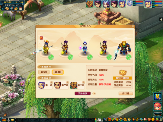 三、浊气乱人心(挑战怪) 活动时间:2025年11月5日12:00至2025年11月18日12:00 参与条件:角色等级≥50级,队伍人数=5人 活动简介 回春堂的郎中最近接收了不少表现反常的青年,郎中们怀疑是有浊气侵入其体内,少侠可帮忙驱逐浊气。 活动期间全天,玩家(角色等级≥50级,5人组队)可在长安城(232,117)情缘仙子处选择“浊气乱人心(挑战怪)”开启玩法。 少侠可以挑战普通、英雄两个难度的挑战怪。每日前2次战胜挑战怪,将会获得经验、金钱、单身节积分奖励;完成英雄难度挑战,战斗用时将被记录在排行榜中,活动结束后在榜少侠可获得“妙手净浊气”的称谓。 特别说明 1、任务不受双倍、精修时间影响,死亡计算为非正常死亡,原地复活无损失;若使用800*600、1024*768、1024*768(HD)、1280*960(HD)分辨率、全屏客户端或互通版参与活动,则经验、金钱奖励和获得物品概率都将提升10%。 2、挑战成功将获得单身节活动积分,玩家可以在长安城(232,117)情缘仙子处使用积分兑换召唤兽寿命。情缘仙子回收时间:2025年12月2日 8:00。