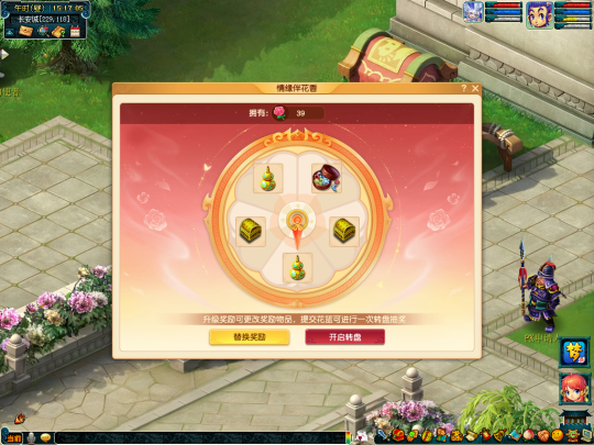 五、情缘伴花香(特色抽奖) 活动时间:2025年11月5日12:00至2025年11月18日12:00 参与条件:角色等级≥30级,单人 活动简介 单身宴会场地需要大量花篮布置,少侠在单身节活动期间参与各玩法时有机会获得“心意鲜花”,在长安城(232,117)情缘仙子处选择“情缘伴花香(特色抽奖)”选项打开抽奖界面。提交“心意鲜花”制作花篮后开启抽奖,即可抽取奖励。 制作花篮后,玩家继续提交“心意鲜花”可替换转盘中的奖励,每个奖励最多替换2次,第2次替换必为高价值奖励。 每次开启转盘完成抽奖后,转盘将重置为未解锁状态,重新提交“心意鲜花”制作花篮即可开启下一轮抽奖。 特别说明 1、当前开启的抽奖转盘和留存的心意鲜花保留至情缘仙子回收时间2025年12月2日8:00,请少侠留意时间及时抽奖。 2、抽奖转盘每个格子被抽中的概率固定为20%,替换前后均不会改变。