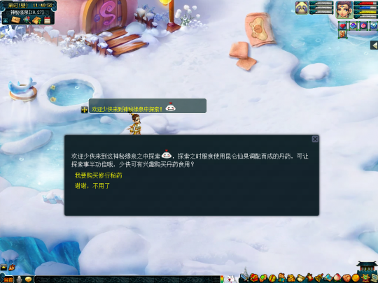 六、神秘的缘泉(挂机修行) 活动时间:2025年11月5日12:00至2025年11月18日12:00 参与条件:角色等级≥10级,单人 活动简介 活动期间,玩家(≥10级,单人)可前往(232,117)情缘仙子处选择“神秘的缘泉(挂机修行)”进入神秘缘泉探索,每3分钟可获得一次经验奖励。 特别说明 1、各位少侠可通过长安城(232,117)情缘仙子处进入神秘的缘泉。场景内不可使用飞行符、导标旗、灵光宝匣、回门派法术,只可以通过神秘缘泉(78,41)的豚米米的好友进行传送。 2、每天每名少侠可以在神秘缘泉中探索5个小时,获得100次奖励,之后将不能再获得奖励。 3、每天每名少侠可以在豚米米的好友处购买九霄清心丸及天机培元丹,获取更多奖励。 4、奖励不受双倍、精修加成时间影响。 叶子猪梦幻西游玩家群:1群 325703083 (2000人),2群: 330102322 (千人);3群: 424986787 (游戏疑难解答);4群: 330518295 (商人物价);5群: 1063086037 (疑难解答);6群: 1045753197 (春心萌动);7群: 787195090 (活跃互动);8群: 720665628 (全民PK)