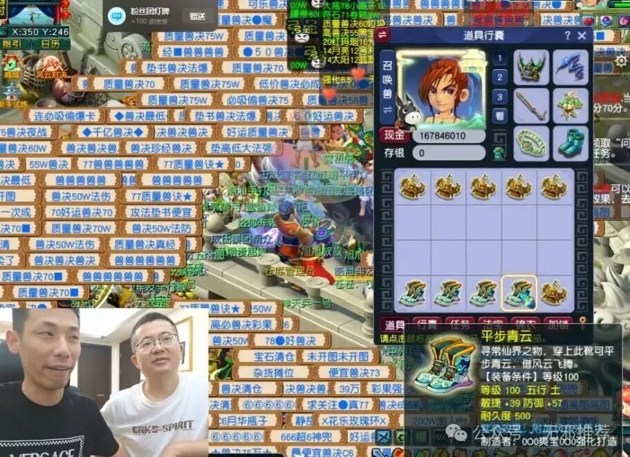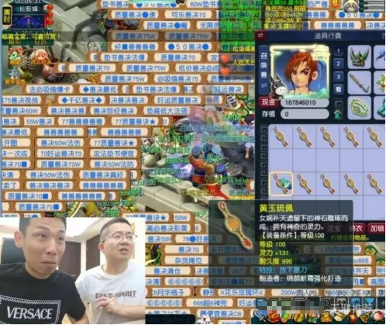 大家好,我是无邪,资深老玩家给你带来梦幻故事! 宝哥在【龙拳】鉴定鞋子和头盔装备的时候,没想到开局就逆袭了,喜提双蓝字!100级男头,防御+57,魔法+118,特技是玄鸟之灵,特效是易修理。宝哥之前就出过两个,问王发财卖掉了吗?他回答都卖掉了,然后小王就说这个头值6万,王发财来了句我还想卖8万呢,你这给底价透露了。6万这个价格还是卖很快的,估计王发财感觉卖便宜了! 后面又出了100级杀气诀鞋子,据悉价值两万,很不错了。 没想到紧接着下一轮出了伯牙绝弦的男头,防御+59,“外置大脑”主播都说跟玄鸟一样,基本上值个6万,宝哥到现在是一直赚呀!宝哥说感觉晚上要爆发,每一轮都出好东西! 无邪当时看直播都懵了,这也太假了。出完伯牙绝弦,紧接着又出了破甲术,外置大脑又报价5万,这太吓人了,每一轮都逆袭呀,宝哥真是“改数据”了? 然后十件啥也没出以后,紧接着又出了一条131初灵的放下屠刀项链,基本上也得值个4-5万!同一轮还有一件131初灵攻心术项链,这个也得三万附近,宝哥疯狂的出货!后来又鉴定70来件,整体战绩比较惨淡,唯一的惊喜就是165初灵项链,被老板当场报价4万! 最后宝哥还是没忍住,又让老王弄了一轮,没想到又出了放下屠刀的57防御的100级男头,价值6万!后面宝哥因为这波出了,然后宝哥又鉴定了一轮,结果没出,感觉宝哥被王姨钓鱼了,哈哈! 然后这一波出了一个杀气诀的男头,然后也价值两万,基本上回本,然后宝哥又要一轮!然后出了疾风荡魄和诅咒之亡,宝哥就又食言了,宝哥玩鉴定是真上头,根本停不下来! 最后宝哥拉着大斌子的手,以拉中之拉的鉴定中结束了直播。 叶子猪梦幻西游玩家群:1群 325703083 (2000人),2群: 330102322 (千人);3群: 424986787 (游戏疑难解答);4群: 330518295 (商人物价);5群: 1063086037 (疑难解答);6群: 1045753197 (春心萌动);7群: 787195090 (活跃互动);8群: 720665628 (全民PK)