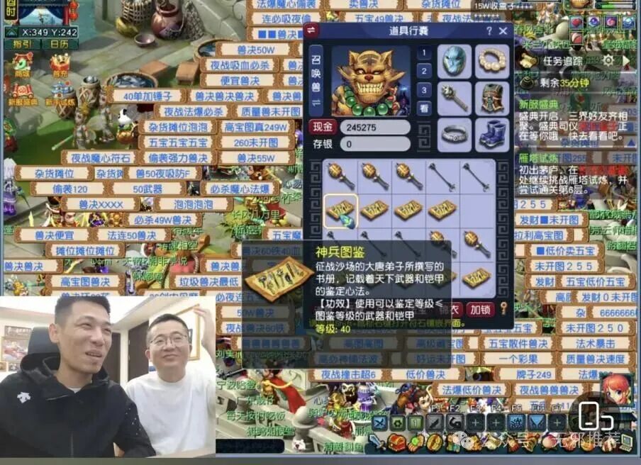 大家好,我是无邪,资深老玩家给你带来梦幻故事! 旭旭宝宝这次入驻齐天大圣做好了万全准备,拉了不少的老板和主播。因此这个区的人数达到空前的高涨,但宝哥比较担心一个问题,由于老板太多了,会不会造成资源不够用的情况呢?鉴定费用应该不会比龙拳少。 然后宝哥想了点办法,就是去帮老板鉴定,又省钱又还有直播效果。或者宝哥便宜收未鉴定,鉴定完以后,再低于市场价卖给那些老板,哈哈,宝哥你的算盘打得真响。 最逗的是本来宝哥想要挖高宝图,结果老王直接又开始给他丢40级的未鉴定了,直接给宝哥整笑了,天台战神标签怕是撕不掉了,老王也解释说不想让宝哥忘了本,其中就出了一个放下屠刀男头,因为数量不多,毕竟刚开区第一天。 但是从这个打造者来看,估计是老王看到了上次龙拳打造商人赚得盆满钵满,以前是收书铁找商人打造,现在看来是要自己收书铁,然后也自己打造了,打造这碗饭也要端起来! 其中还有个好玩的事情就是宝哥打算玩狮驼岭,结果很多粉丝还给她大唐装备,想要边上套,结果还是给他满天花雨套,给宝哥整不会了。哈哈!笑死无邪! 叶子猪梦幻西游玩家群:1群 325703083 (2000人),2群: 330102322 (千人);3群: 424986787 (游戏疑难解答);4群: 330518295 (商人物价);5群: 1063086037 (疑难解答);6群: 1045753197 (春心萌动);7群: 787195090 (活跃互动);8群: 720665628 (全民PK)