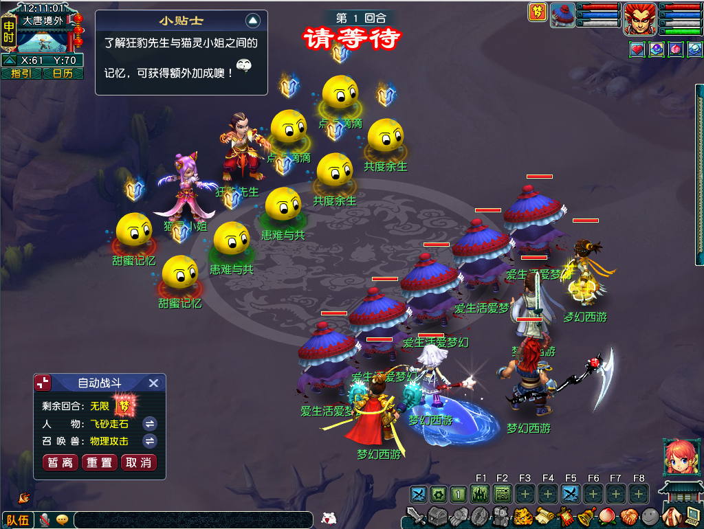 逍遥独生何自在,舞动三界满高朋。《梦幻西游》电脑版畅玩服2025单身节活动将于2025年11月7日12:00至11月17日12:00在全服上线。 一、以舞会友乐悠悠(特色玩法) 活动时间 测试时间:2025年10月29日 12:00:00-2025年10月30日 12:00:00 全服时间:2025年11月7日 12:00:00-2025年11月17日 12:00:00 参与条件 角色等级≥30级,单人 活动概述 听闻如今的三界人士爱好跳舞,司命星官特造一处虚幻之境,邀天下人士以舞会友。 活动期间,每天10点-12点,18点-20点,妙舞仙境将限时开放。 少侠在仙境中,根据指引做出正确的操作,将会在仙境中跳起舞步。 每连续跳舞达到3秒,可获得经验奖励。 特别说明 1、奖励不受双倍时间影响。 2、玩家每日最多可在玩法中获得40次经验奖励。 二、小心愿有大回报(特色玩法) 活动时间 测试时间:2025年10月29日 12:00:00-2025年10月30日 12:00:00 全服时间:2025年11月7日 12:00:00-2025年11月17日 12:00:00 参与条件 角色等级≥30级,单人 活动概述 为了让天下孤单的人儿聚在一起,司命星官特意向三界少侠赠送心愿宝箱。这心愿宝箱也是一件妙物,它不仅承载着许愿者的心愿,更是可以汲取友人的祝福。若是得到足够的祝福,恐怕还能产生不得了的效果。 活动期间,每天活跃度达到100后,可以在日历界面领取“心愿宝箱”道具。 宝箱可以放置在帮派、玩家之家、江南野外、大唐国境、大唐境外、长寿郊外、花果山场景。 宝箱成功放置后,其它玩家可以参与助力,参与助力的玩家人数达到5/20/50人后,宝箱会依次升级至铜/银/金宝箱,宝箱等级越高奖励越高。每名玩家每天最多可参与5次助力。 宝箱一旦设下将在10分钟后自动开启,玩家亦可主动提前开启心愿宝箱。开启心愿宝箱时,宝箱的拥有者和所有参与助力的玩家,均可获得一份奖励。 特别说明 1、奖励不受双倍时间影响。 2、心愿宝箱会在活动结束后过期,少侠记得即时使用哦! 三、仙女乱点鸳鸯谱(挑战怪) 活动时间 测试时间:2025年10月29日 12:00:00-2025年10月30日 12:00:00 全服时间:2025年11月7日 12:00:00-2025年11月17日 12:00:00 参与条件 角色等级≥50级,组队人数=5 活动概述 单身佳节期间,调皮的七仙女也来到三界,她吵吵闹闹地想要给寂寞的人们牵上红线,没想到却因为涉世不深,经常乱点鸳鸯谱,甚至把自己也牵扯其中闹出不少笑话…… 活动期间,每天可以在大唐境外(66,68)处帮助身陷麻烦的七仙女。玩法共有入门、普通、进阶、困难、侠士5场不同难度的挑战,每日首次通过每个难度的挑战,均可以获得丰厚的奖励。 特别说明 1、奖励不受双倍时间影响,死亡原地复活无损失。 2、每个关卡每日最多胜利通关2次,仅可获得1次通关奖励。 四、扫荡远古寂寞灵(投放怪) 活动时间 测试时间:2025年10月29日 12:00:00-2025年10月30日 12:00:00 全服时间:2025年11月7日 12:00:00-2025年11月17日 12:00:00 参与条件 角色等级≥50级,组队人数≥3 活动概述 传说中,寂寞之灵喜欢附身在人们身上,催发被附身之人心中的寂寞之情,让人苦不堪言。三界义士自是不忍寂寞之灵肆意作乱,于是每当有寂寞之灵现身,便结队前去将它们驱赶。 活动期间每天每个整点的15分和45分,寂寞之灵会出现在三界各处,击败他们可以获得丰厚的奖励。 特别说明 1、奖励不受双倍时间影响,死亡原地复活无损失。 2、每日最多可击杀5次寂寞之灵,后续无法获得奖励。 叶子猪梦幻西游玩家群:1群 325703083 (2000人),2群: 330102322 (千人);3群: 424986787 (游戏疑难解答);4群: 330518295 (商人物价);5群: 1063086037 (疑难解答);6群: 1045753197 (春心萌动);7群: 787195090 (活跃互动);8群: 720665628 (全民PK)
