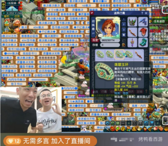 大家好!「烤鸭看西游」每天为你带来不一样的故事。 1、旭旭宝宝圆梦100愤怒腰带 旭旭宝宝昨天也是狗托了一把,鉴定出了 100级愤怒腰带,也是发财了 2、风少合出龙拳第一吸血鬼 昨天风少 也是狗托了一把,炸出了 15JN吸血鬼,已经打成全红了. 3、这九黎武器差点起飞了啊 粉丝投稿:自己 差一点起飞. 4、X9第一无级别法系锤子出炉? 狗托玩家传音展示:高伤无级别,150级伤害540 命中572 敏魔双加47点属性 无级别锤子,也是直接发财了, ?多吃长寿面 多吃长寿面. 叶子猪梦幻西游玩家群:1群 325703083 (2000人),2群: 330102322 (千人);3群: 424986787 (游戏疑难解答);4群: 330518295 (商人物价);5群: 1063086037 (疑难解答);6群: 1045753197 (春心萌动);7群: 787195090 (活跃互动);8群: 720665628 (全民PK)