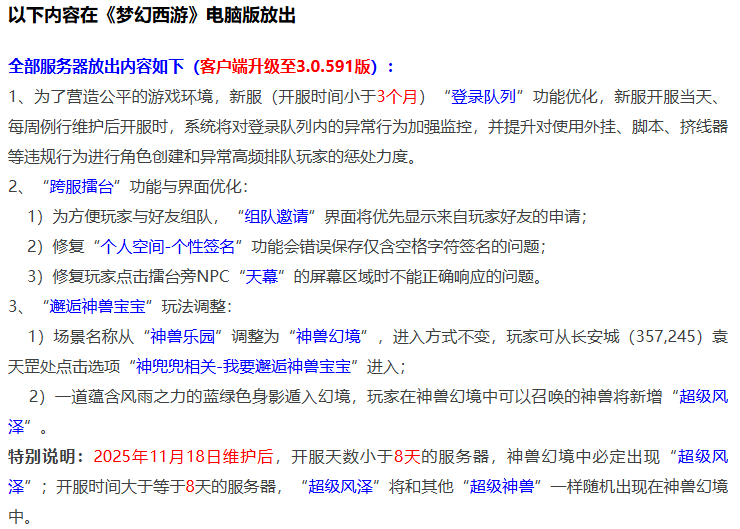 梦幻西游11月18日维护解读:新出须弥神兽,特殊技能借你一用绑定超级技能