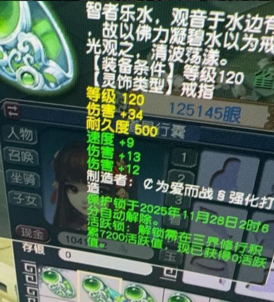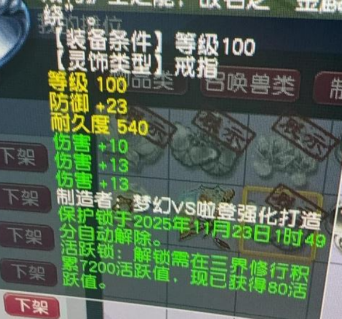 大家好!「烤鸭看西游」每天为你带来不一样的故事. 一、波总接棒花木兰的第一双剑 苏堤春晓波总发视频庆祝,自己已经拿下队友三雾哥的第一大唐双剑武器。三雾哥也是有意出售一段时间了,终于帮这神器找到最好的归宿。感觉在十月大改后,这个号应该不用坐板凳了。 二、畅玩服130无级别玉清男头问世 畅玩服【龙拳】玩家鉴定出了130级无级别玉清诀男头。不知道谁能拿下?这种装备别说是在畅玩服,就算是时间服那也是X9顶尖价值的。 三、风少合出建邺城双特殊龙龟 风少在【建邺城】炼妖时手气通天,炸出一只10JN死亡法防龙龟,自用相当舒服! 四、鉴定灵饰惊喜频出 玩家回归这一个月以来,专注于鉴定灵饰。他拿到了很多小极品,例如120级三伤害一速度的戒指。 此前还有三伤害戒指,可惜主属性歪了。 双法伤一法暴戒指,整体价值还可以。 叶子猪梦幻西游玩家群:1群 325703083 (2000人),2群: 330102322 (千人);3群: 424986787 (游戏疑难解答);4群: 330518295 (商人物价);5群: 1063086037 (疑难解答);6群: 1045753197 (春心萌动);7群: 787195090 (活跃互动);8群: 720665628 (全民PK) [编辑:百晓生]