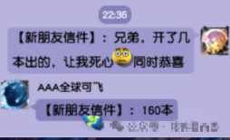 大家好!「烤鸭看西游」每天为你带来不一样的故事。 一、梦回望月玩家开出超级否定兽诀 【梦回望月服】务器的“AAA全球可飞”玩家运势极佳,通过感应魔石开出了超级否定兽诀。 有玩家立刻对号主进行了采访,得知开了160本才出的。按照1100W梦幻币每本的成本计算,大概花了17.6亿。 二、武当山服务器新出140无级别刀 武当山服务器有玩家鉴定有惊喜。好消息是出无级别了,坏消息是属性国标,价值十分有限。 三、南阳府服战队连拍2本须弥兽诀 【南阳府】服战队给两只10技能谛听都打上了须弥兽诀。一只成为了7轮车,带高魔套美滋滋。 另一只是7轮车,应该也带高魔心套。 四、第一神佑妙法巨剑出鞘 玩家鉴定出160级伤害526、命中596且耐敏双加44的神佑妙法巨剑。这是服战级神兵,价值连城。 叶子猪梦幻西游玩家群:1群 325703083 (2000人),2群: 330102322 (千人);3群: 424986787 (游戏疑难解答);4群: 330518295 (商人物价);5群: 1063086037 (疑难解答);6群: 1045753197 (春心萌动);7群: 787195090 (活跃互动);8群: 720665628 (全民PK) [编辑:百晓生]